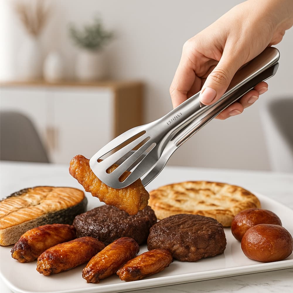 High quality stainless steel food serving tongs (29cm) are an essential tool for your kitchen. It can be used to easily hold and serve fish, meat, bread, sweets, barbecue or fried food. Made of strong and durable stainless steel, it does not rust and can be used for a long time.