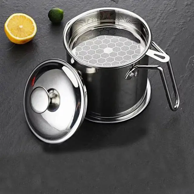 Stainless Steel Oil Strainer Pot Container Jug Storage with filter Cooking Oil Pot - Grey