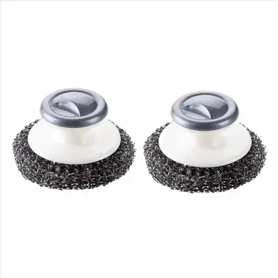 - [Easy To Clean] The stainless steel scrubbers for pots and pans is easy to clean and scrub the stains and grease on the cast iron pan, and also can easily remove the rust from the bottom of the pan, making it newer than before. The dish scrubber with a handle can be used with detergent to remove grease stains faster.