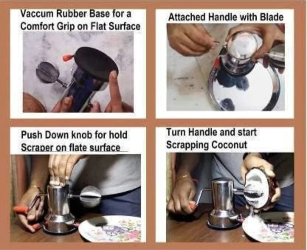 Ergonomic Handle: Many coconut scrapers come with a comfortable, sturdy handle that ensures a secure grip and makes it easy to use for extended periods without straining.