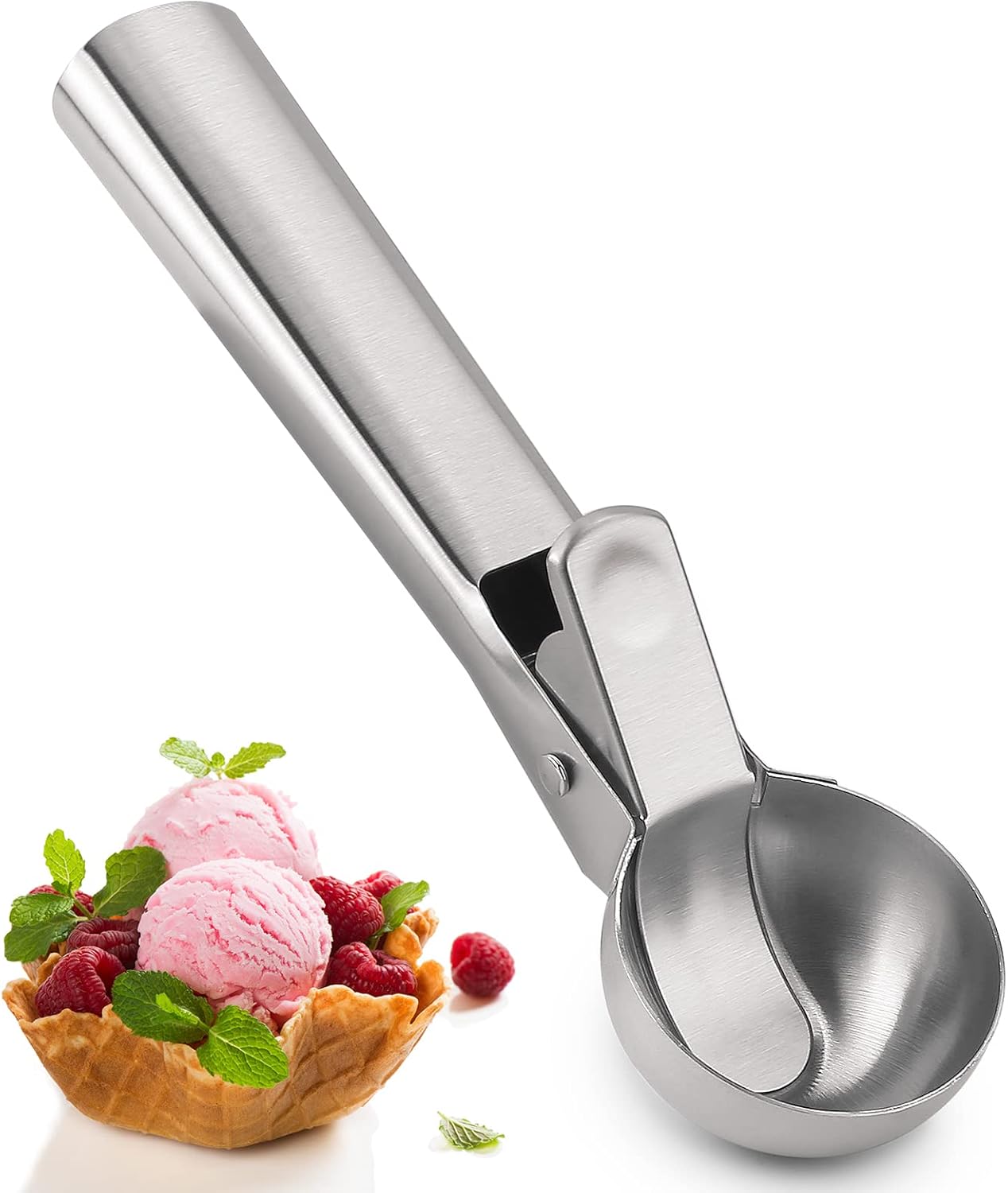 Kuber Industries Stainless SteelSpring/Trigger Ice Cream Scoop is made of high quality stainless steel. Thisscoop comes with a spring to scoop and remove the ice cream easily.