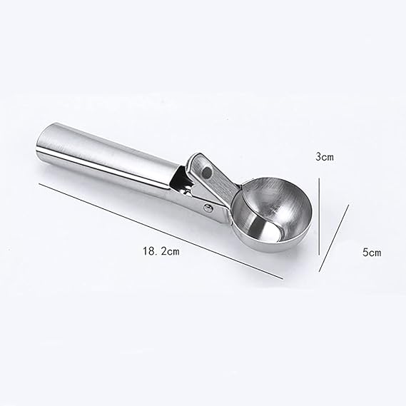 Length: 18.8 CM Bowl Width: 5 CM. The deepbowl of the scoop penetrates into the ice cream to pull out a rounded section,whereas the strong construction keeps the scoop from bending.