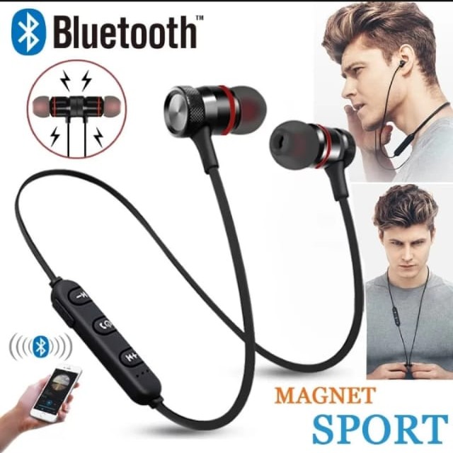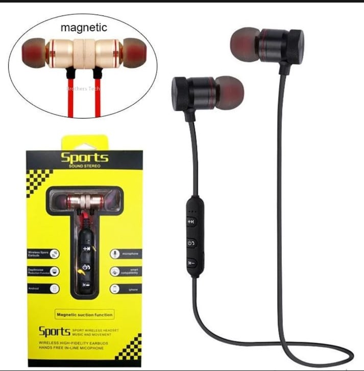 - Stereo Super Wireless Sports Bluetooth Magnet Earphone-Black