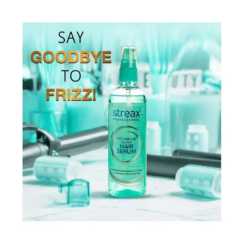 • RICH IN VITAMIN E: Vitamin E is vital for hair. It helps repair damaged hair follicles. Its rich properties ensure that hair remains perfectly healthy.• SMOOTH AND SOFTEN HAIR: A small bit of the hair serum goes a long way in transforming your tresses. Hydrates, smoothen and soften hair for an incredible hair-overhaul in a matter of minutes.• ONE DROP, FRIZZ STOPS: Streax Professional Vitariche Gloss Hair Serum helps instantly transform wild, unmanageable hair into gorgeous, silky locks giving you frizz-free hair without any tangles.• FRIZZ FREE HAIR FOR 24 HOURS: Our professionalVitariche gloss hair serum will provide your hair 24-hour protection from dryness and dullness. Make the best hairstyle before starting your day and have a salon-like gorgeous hair all-day.• How to use:• STEP I:Take 2/3 drops of serum on the palm of your hand• STEP II:Rub the serum in your hands for few seconds.• STEP III:Apply it evenly through damp hair from Mid lengths to ends• STEP IV:For added shine and frizz free hair reapply again any time of the day.