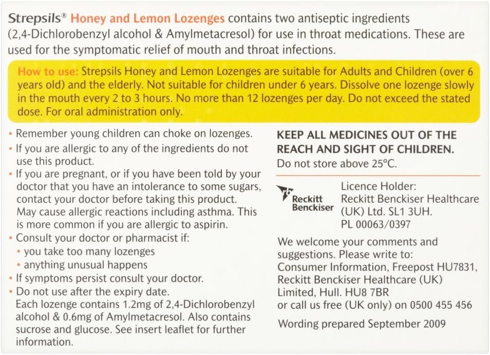 Strepsils Lozenges Relief Of Mouth And Throats Honey And Lemon 24 Lozenges