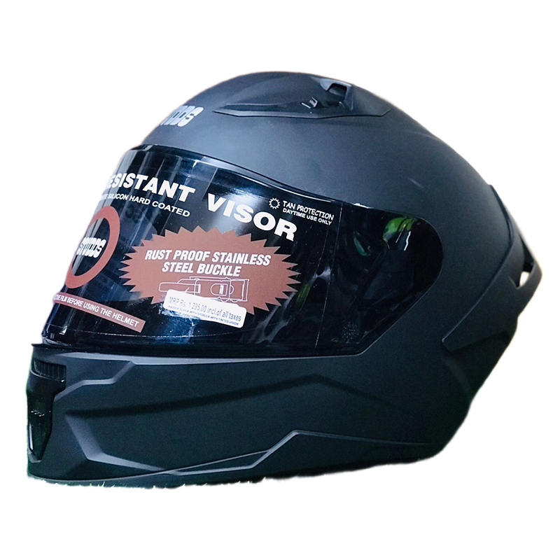 Studds Raider Super Isi Certified Full Face Helmet for Motorcycling with Spoiler&Clear Visor (Black-L) (Matte Black)