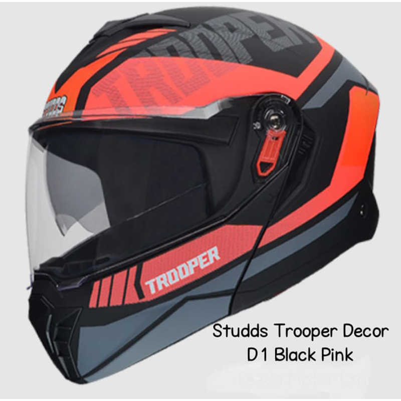 STUDDS Trooper D1 Flip-up Full Face with Dual Visor Motorbike Helmet (Black Red N8) (Red and Black)