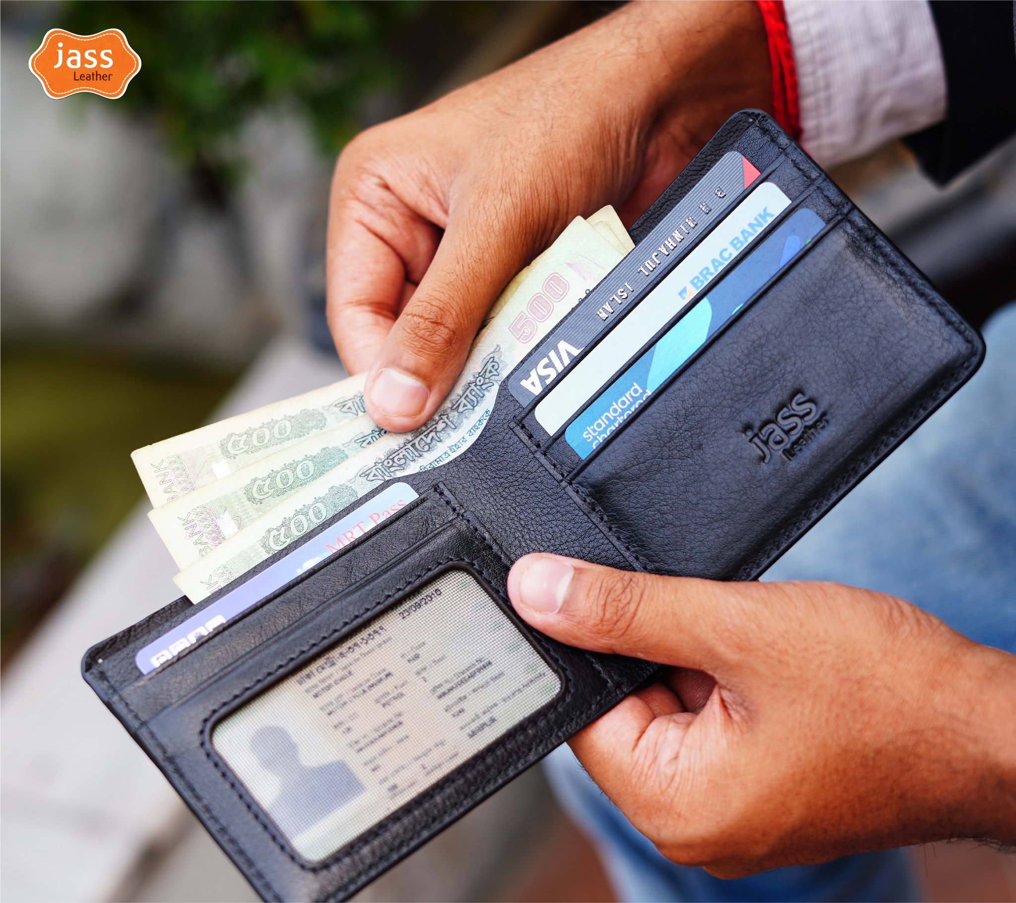 • Slots: 6 card slot+ 1 photo windows+ 1 mobile compartment+ 2 money compartment+ 1 coin compartment