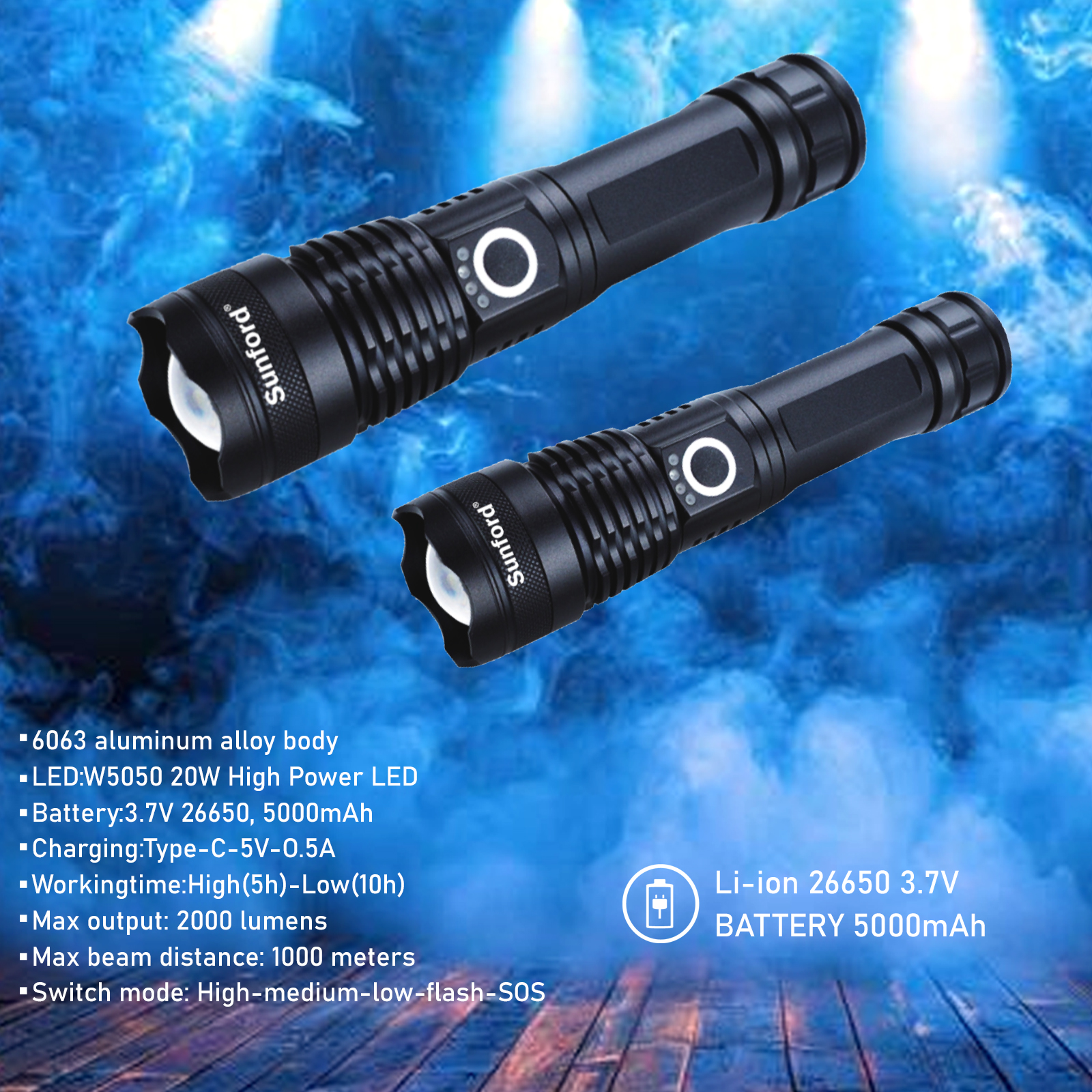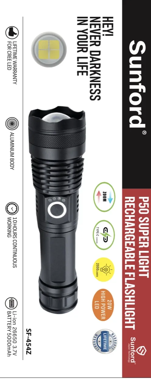 Product details of Sunford SF-454Z Telescopic Zoomable 20W High Powered Zoom Torch / Flash Light - 1 Piece