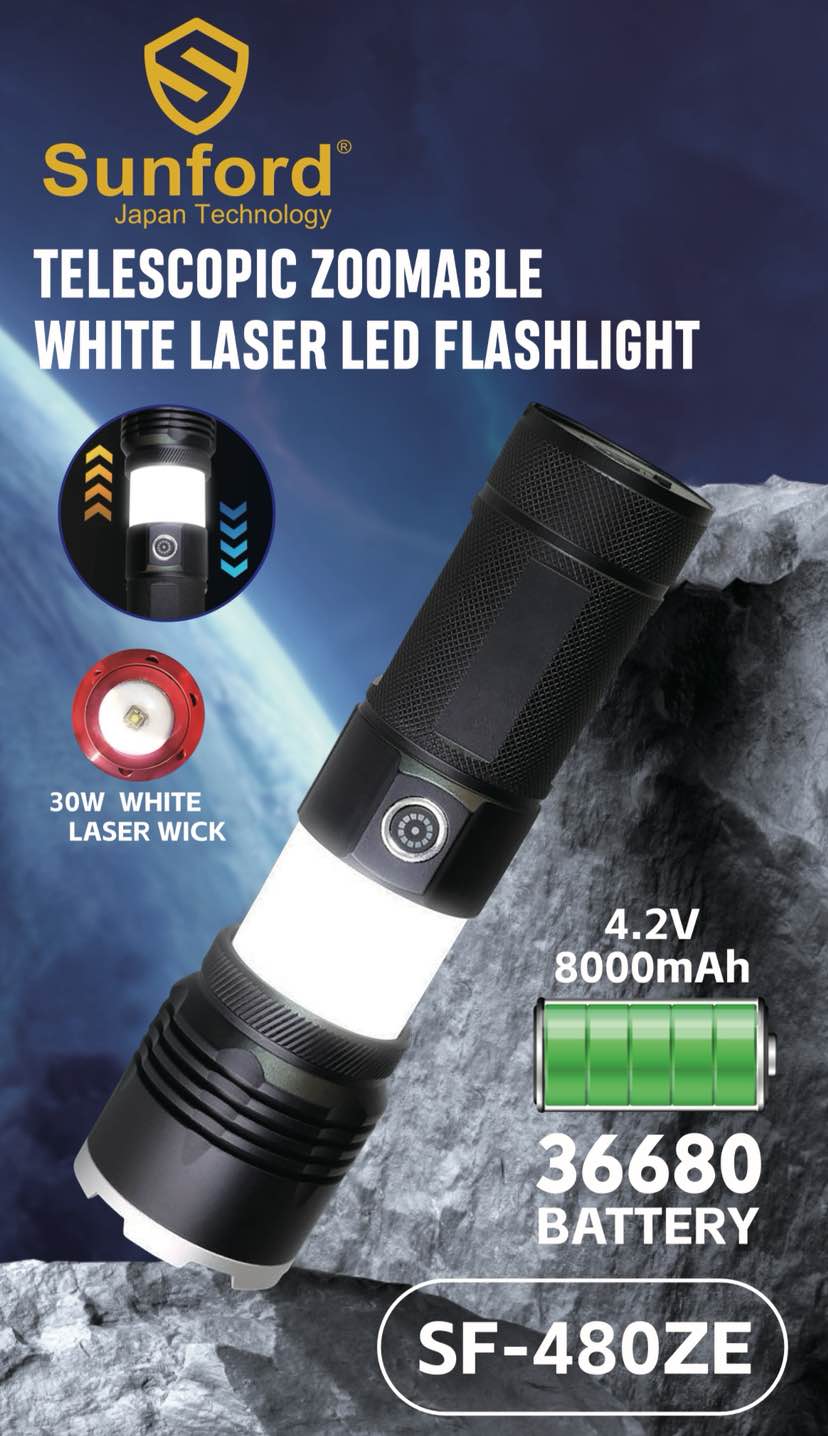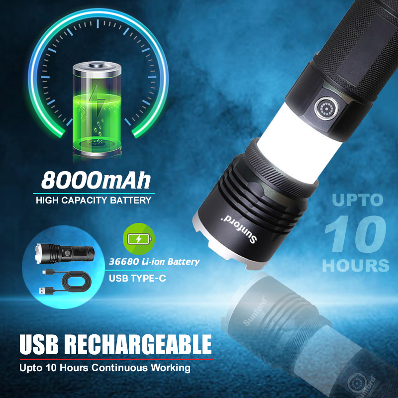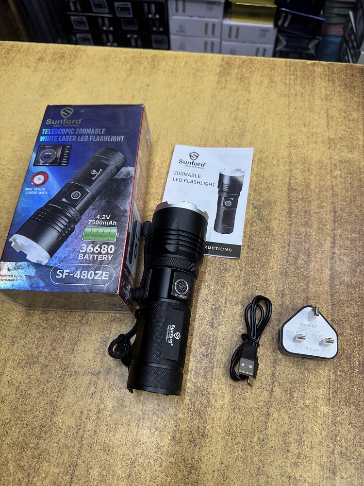 Sunford SF-480ZE Telescopic Zoomable 30W High Powered Zoom Torch / Flashlight with Power Bank and Emergency Light Facility - 1 Piece ( Black )
