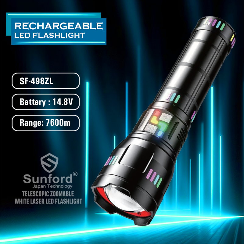 Sunford SF-498ZL Telescopic Zoomable 80W Super High Powered LED Zoom Torch / Flashlight with Power Bank Facility - 1 Piece ( Black )