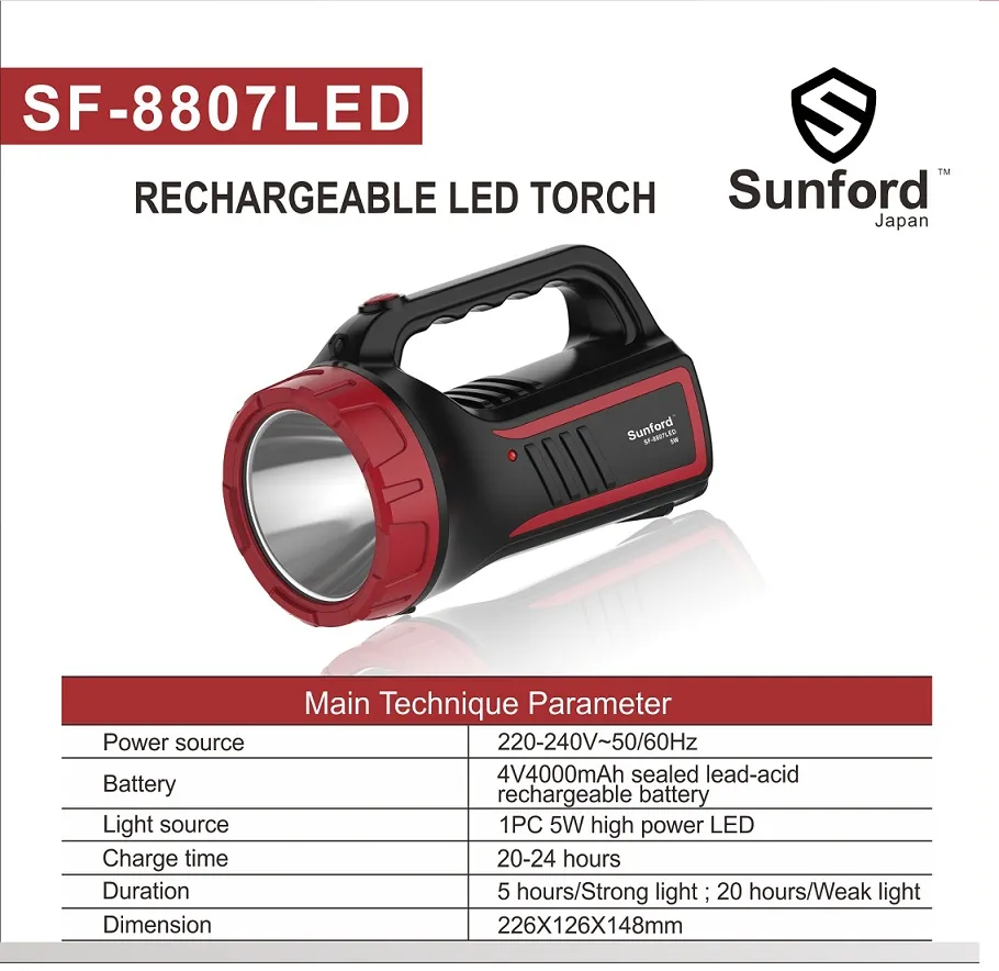 Product details of Sunford SF-8807 5W Rechargeable LED Hand Held Search Light / Flashlight - 1 piece