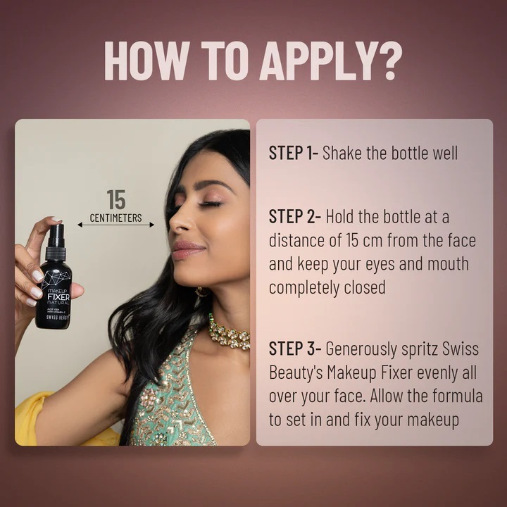 - Swiss Beauty's Makeup Fixer is a weightless spray that effortlessly locks in your makeup without any melting, fading, or settling into fine lines.