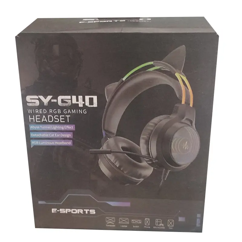 Durable construction ensures that the Sy-G40 can withstand the rigors of daily use, while the tangle-free cable design keeps your gaming area organized. Elevate your gaming experience with the Sy-G40 Wired RGB Gaming Headset, where comfort meets cutting-edge technology.