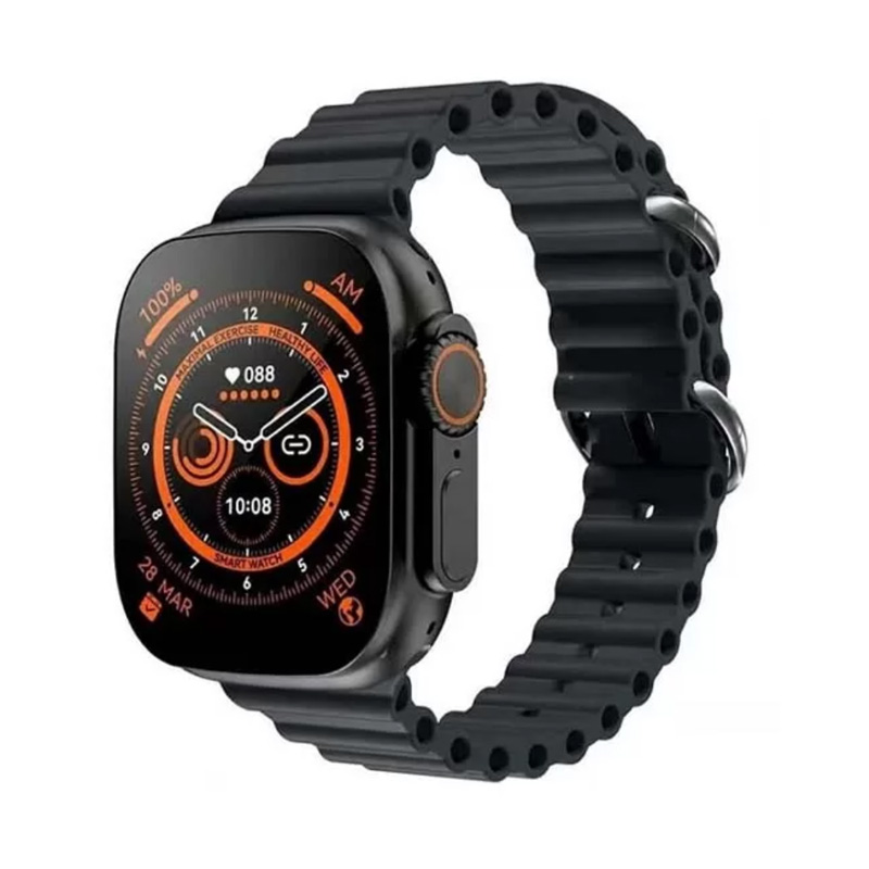 Introducing the T800 Ultra Smartwatch Series 8 with Wireless Charging in Black, the perfect wearable technology for those who want to stay connected on-the-go. With its sleek design and advanced features, this smartwatch is a must-have for anyone who wants to stay on top of their game. The wireless charging feature ensures that you never run out of battery, while the black color adds a touch of sophistication to your style. This smartwatch is perfect for fitness enthusiasts, as it tracks your steps, calories burned, and heart rate. It also allows you to receive notifications, make calls, and send messages without having to take out your phone. The T800 Ultra Smartwatch Series 8 with Wireless Charging in Black is the ultimate accessory for anyone who wants to stay connected and stay fit.