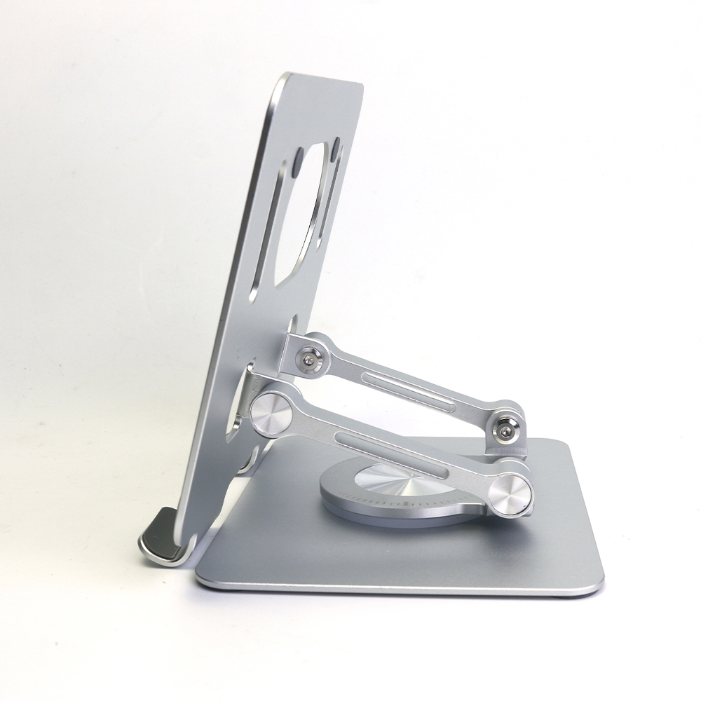 【 360 ° ROTATION 】The laptop stand has a 360 ° rotatable dual axis connection base, which allows you to rotate the laptop to any angle.【 Multi-Angle 】Adjustable tablet holder easily adjusts, supporting both vertical and horizontal viewing, which helps to fix your posture and reduce back pain, neck stiffness, wrist aches and eye strain. Very ergonomic and comfortable for reading and typing.【 DURABILITY AND NON-SLIP PAD】Our stand is made of aluminum alloy and sillicon, the high-quality materials make the bracket more sturdy and durable. Non-slip pads keep the bracket stable and protect any surface it is placed on. Avoid unnecessary slippage during drawing, typing and reading.【 FOLDABLE AND PORTABLE DESIGN 】The stand can be folded, occupying a small space, suitable for home use; easy to carry, suitable for all types of travel, from leisure to business, can be easily stored in suitcases, backpacks and even handbags.【 COMPATIBILITY 】 This tablet stand applies to 4 - 15 inch tablet and phone, such as new 2022/ 2021 iPad Pro 11/ 12.9 inch, iPad 10.9, iPad Air 5, iPad mini 6, iPad Pro 9.7 / 10.5, Surface Pro, Galaxy Tab,Xiaomi Pad, iPhone 14 Pro Max, iPhone 13 Pro Max, iPhone 12, iPhone 11. If you use a tablet larger than 13”and found it's not stable to use, you can set it horizontally, which helps maintain more stability.For iPad Stand Tablet Holder 360° Rotation Bracket Support For Huawei Xiaomi Samsung Tablet Portable Laptop Phone Desktop StandSpecification:Model Number: Tablet StandProduct model: G706Product color: Gray, silverProduct material: Aluminum alloy + siliconeApplicability: Applicable to all 4-15 inch tablets/mobile phonesStatic load bearing: 10kgHeight adjustable: 4.5-15.5cmProduct size: 18x13.8cmProduct weight: 250g【Certification】CE,FCC,KC,UKCA,UL,EPA,WEEE,pse,RoHS,Dot,TGA,NONE,EAC,GMPPackage Include: 1 × Stand