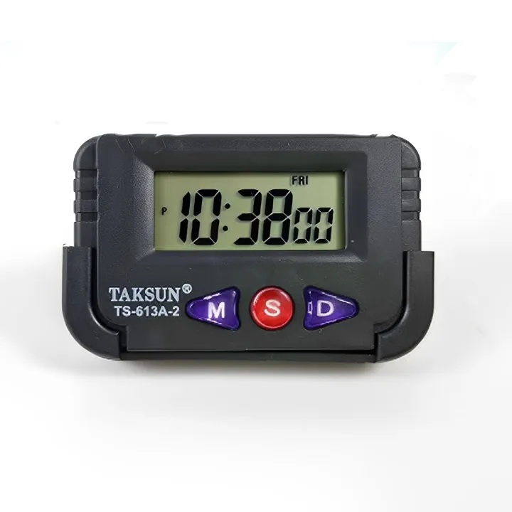The Taksun TS-613A-2 Car Dashboard Alarm Clock & Stopwatch is a compact, multifunctional digital timepiece designed for automotive and travel use. It features a clear LCD display that alternately shows the current time, date, and alarm setting, allowing you to keep essential information visible at a glance. The unit also includes an integrated stopwatch function, making it useful for timing events or tracking trip durations.