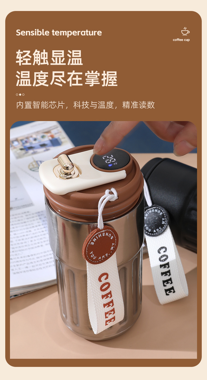 temperature display coffee/juice hot and cold 450ml stainless steel thermos with strap(without led 520ml)