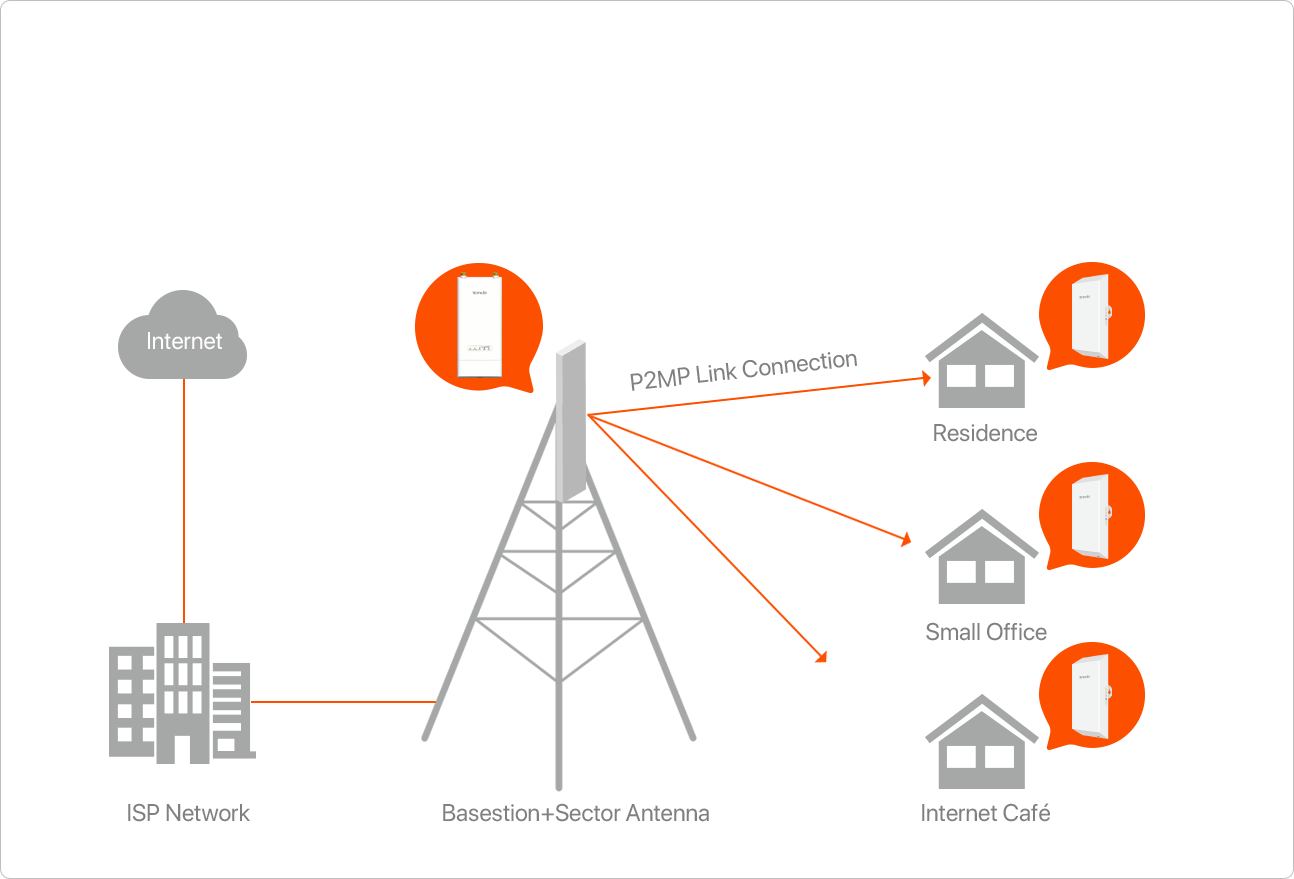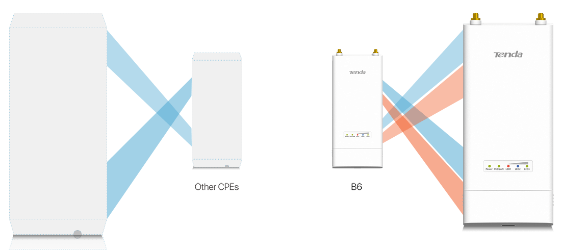 Pair with Sector antenna, B6 work as AP mode to deliver wirelss signal to share Internet to local resident,small office.