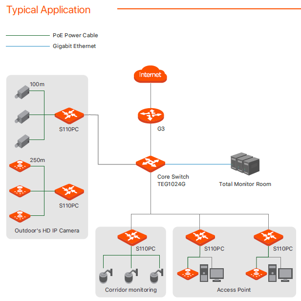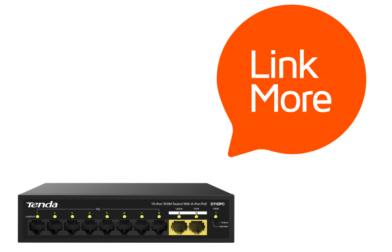 S110PC is a 100M dual-port uplink unmanaged PoE switch independently designed by Tenda. Compatible with AF/AT standard PoE power supply mode, intelligently identify powered devices. The maximum output of a single port is 30W, and that of the whole machine is 80W. Support 250m network extension, QoS priority and other functions, designed for outdoor, indoor, etc.Small-scale monitoring network needs to be built, it is an ideal choice for small enterprises, convenience stores, and street restaurants video surveillance network.