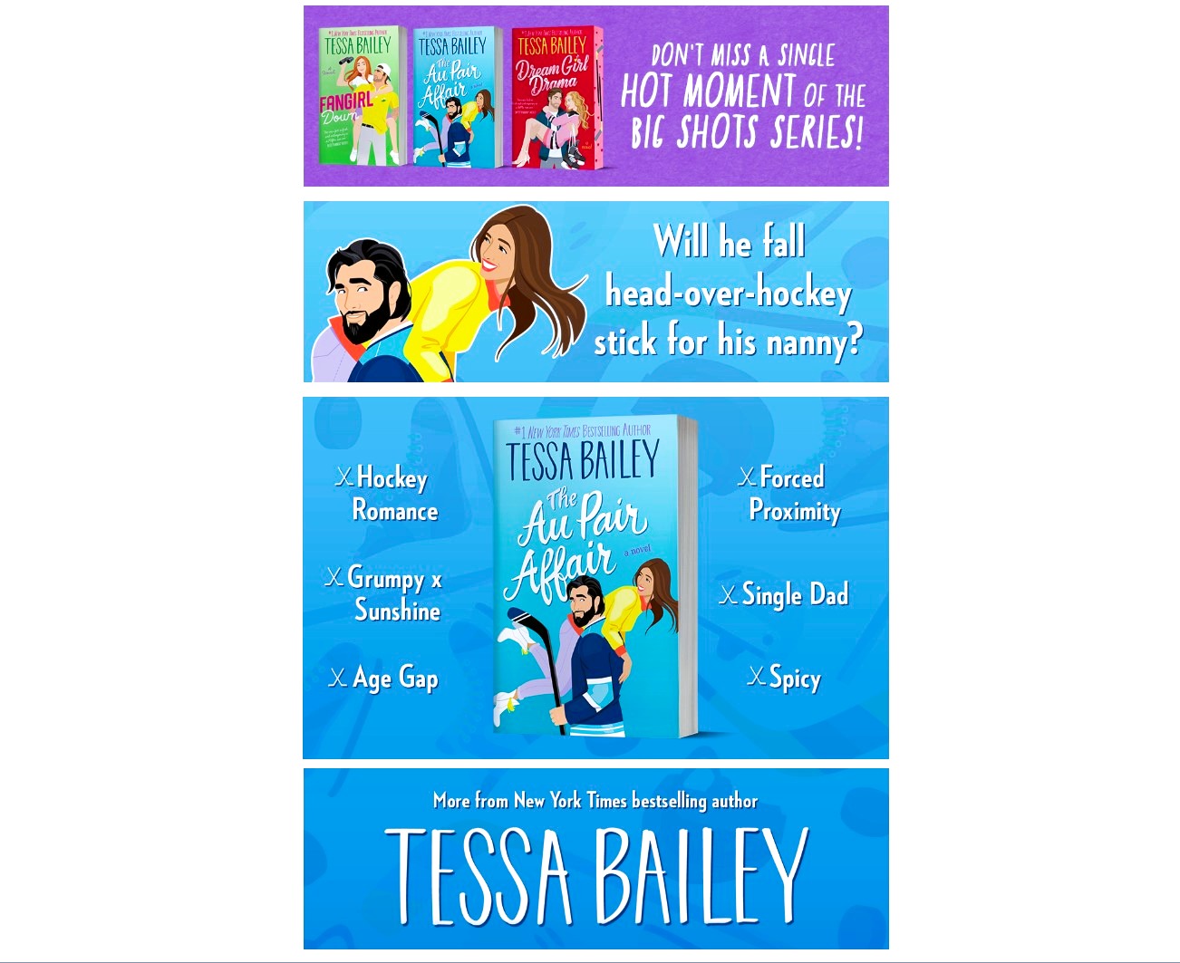 Tallulah is smart, full of life, and on her way to becoming a marine biologist. She’s also twenty-six, broke, and in desperate need of a solid job. So when Burgess—a battle-hardened hockey veteran and newly single father—offers her a live-in nanny position, she jumps at the chance. A paycheck, a swanky neighborhood, and the chance to bond with Lissa, his quiet but seriously cool tween? Sign her up.