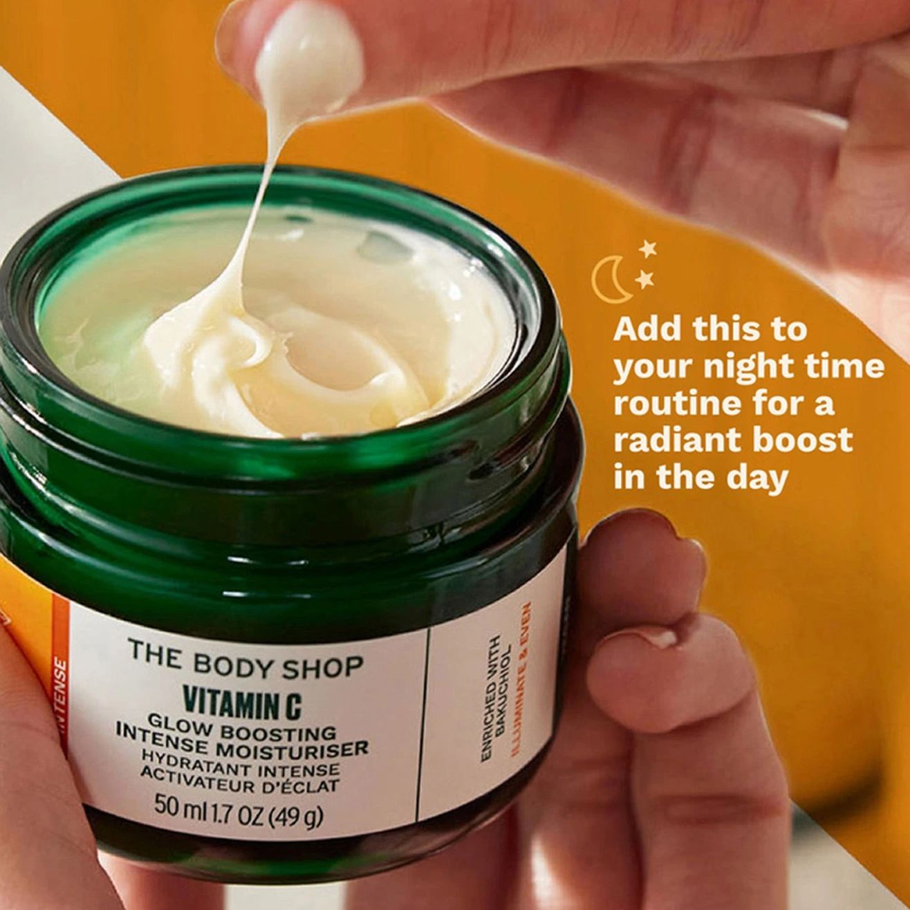The Vitamin C Glow Boosting Moisturizer is a fresh, lightweight gel formula that will give your skin a daily boost of radiance and hydration. With vitamin C, it awakens and clarifies your complexion, revealing a natural healthy looking glow. Say goodbye to grumpy, dull, fatigued looking skin and reveal your natural, healthy-looking glow with The Body Shop Vitamin C Glow Boosting Moisturizer. This fresh, lightweight facial cream gives your skin a daily boost of radiance and hydration. Made with Amazonian camu camu berries, which have up to 60x the vitamin C power of an orange, this face moisturizer will awaken, energize and clarify your skin with each application. Paraben-free. Gluten-free. Silicone-free. 100% Vegan. Say goodbye to grumpy, dull, fatigued looking skin and reveal your natural, healthy-looking glow with The Body Shop Vitamin C Glow Boosting Moisturizer. This fresh, lightweight facial cream gives your skin a daily boost of radiance and hydration. Made with Amazonian camu berries, which have up to 60x the vitamin C power of an orange, this face moisturizer will awaken, energize and clarify your skin with each application. Paraben-free. Gluten-free. Silicone-free. 100% Vegan.