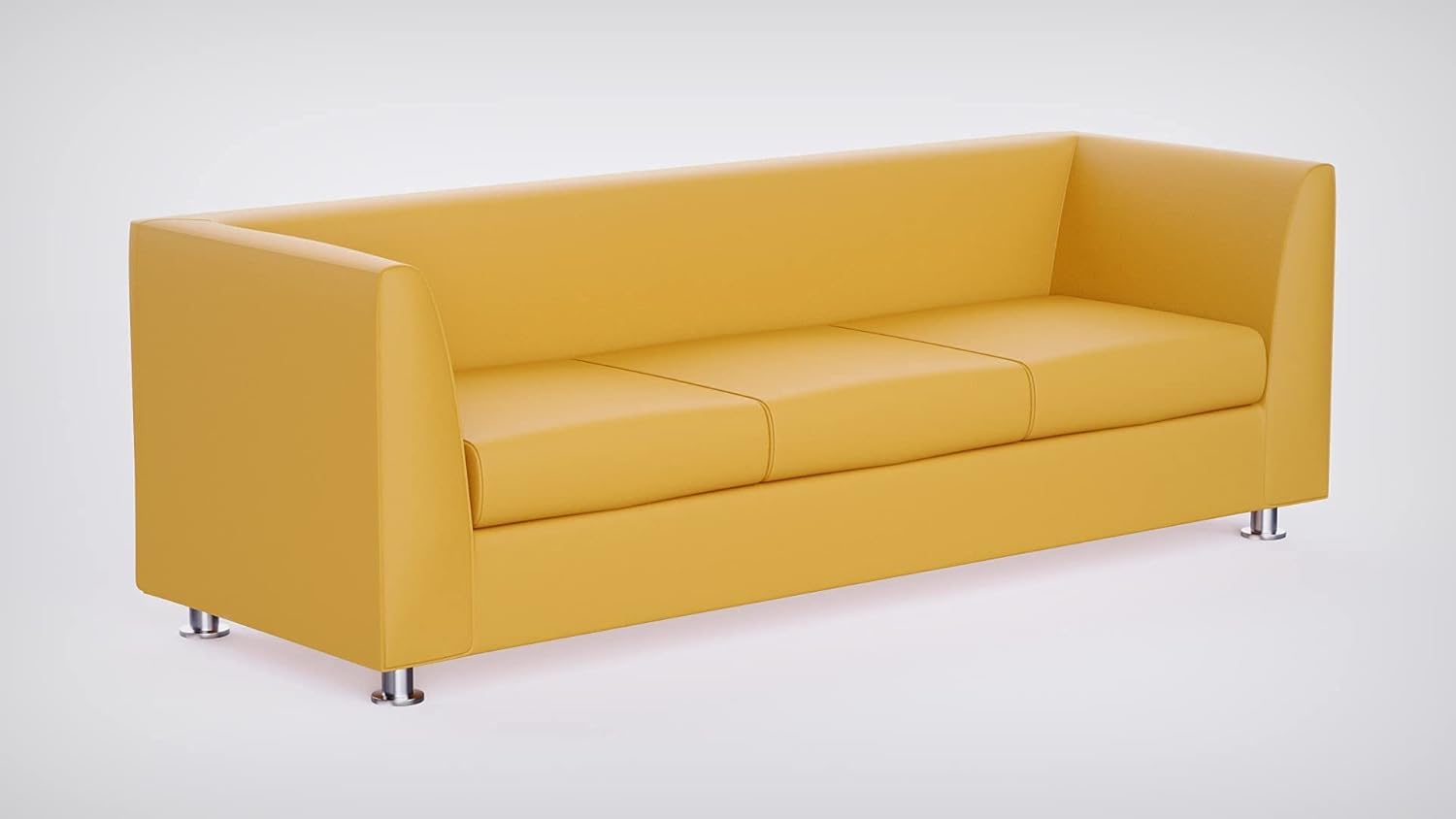 Three Seater Sofa for Living Room, Leather Straight Arms Sofa, Modern Executive Office Lounge Sofa with Metal Legs &High-Density Foam and Space-Saving Seating, Ideal for Home and Office Use