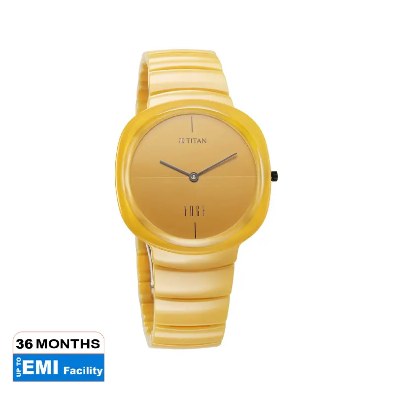 The TITAN 1841QC08 adds a bold pop of color with its vibrant yellow dial. Crafted from ceramic materials, it’s lightweight yet durable. The quartz analog display ensures precision, making it both practical and fashionable. Ideal for those who love standing out with unique style. A radiant blend of color and class.