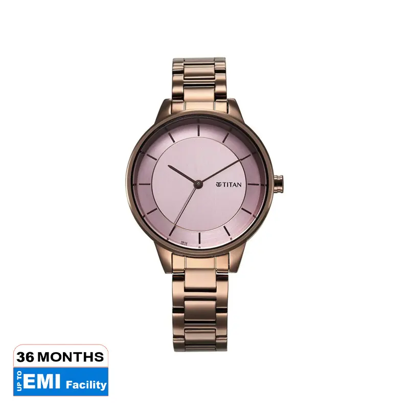 Titan Razzle Dazzle for Ladies with Brown Stainless Steel Strap , Mineral Glass Glass , Pink Dial Colour , Round Analog Quartz Case , Case Size: 36.50 mm Width 43.50 mm Length 8.20 mm Thickness with Push Type Lock , Water Resistance : 5 ATM
