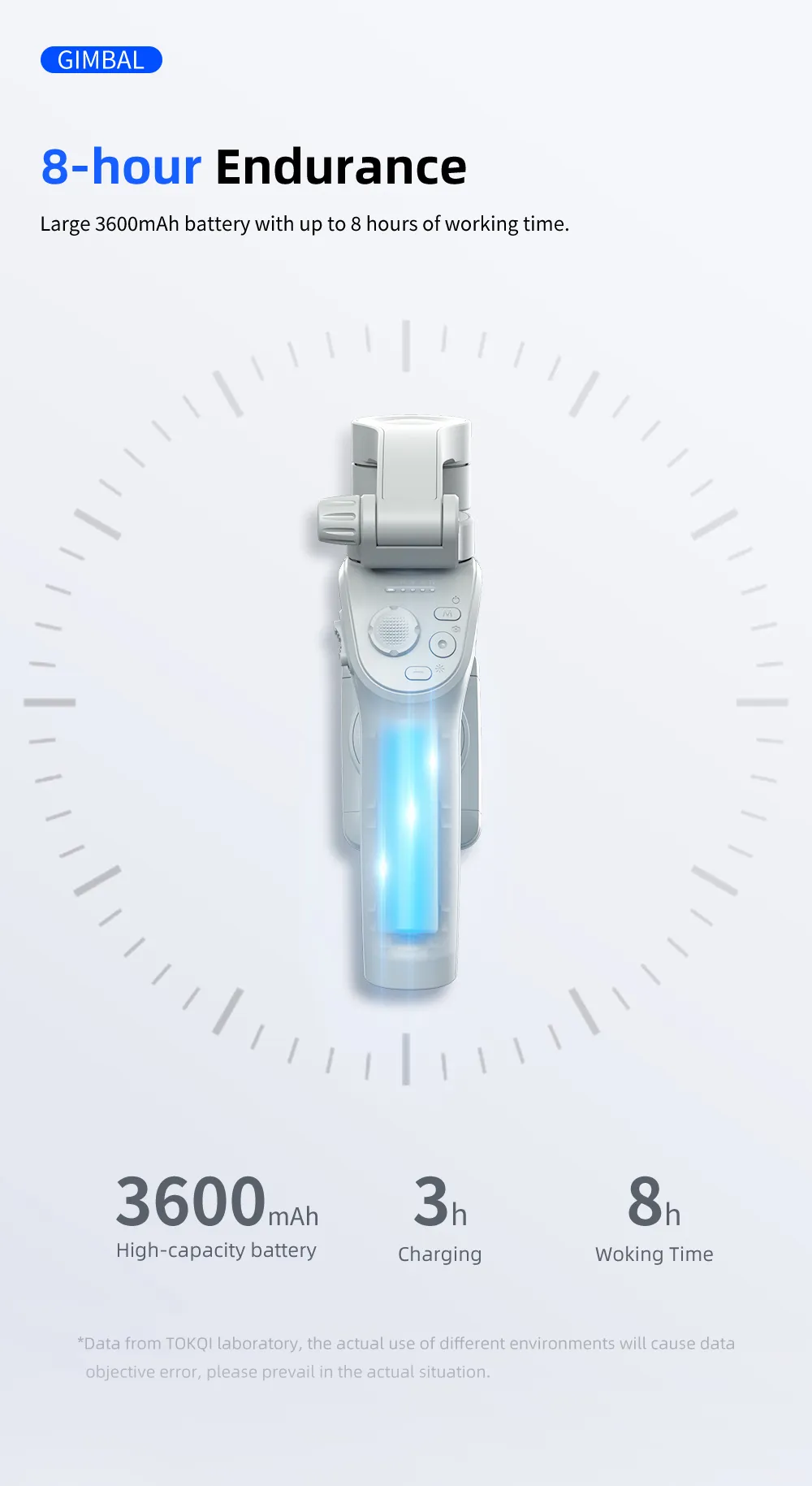 \nLarge 3600mAh battery, up to 8 hours of working time.