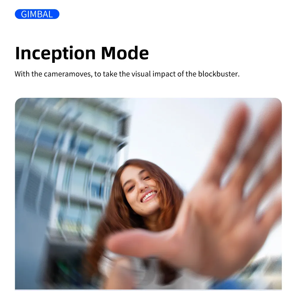 \nAPP name: Gimbal Show \nSupport mobile phone system: Android 9.0 and above; iOS 11 and above \nBluetooth name: M01-XXXXXX \nGimbal working mode: Semi-follow, Full follow, Fully Locked, POV, Inception Space, Semi-follow Go Mode, Full follow Go Mode \nTracking Mode: Face tracking, Object tracking \nGesture Operation: YES \nSelfie Stick Mode: YES \nZoom function: YES \nGesture control function: YES \nFill Light: 9 brightness \n \nStandard Included