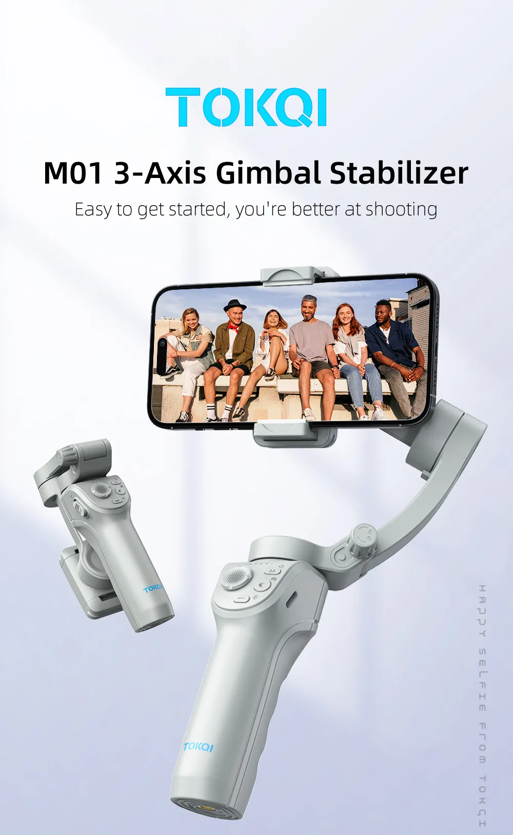 Product details of TOKQI M01 3-Axis Anti-Shake Handheld Gimbal Phone Stabilizer Foldable Holder Selfie Tripod with Fill Light for iPhone Smartphone