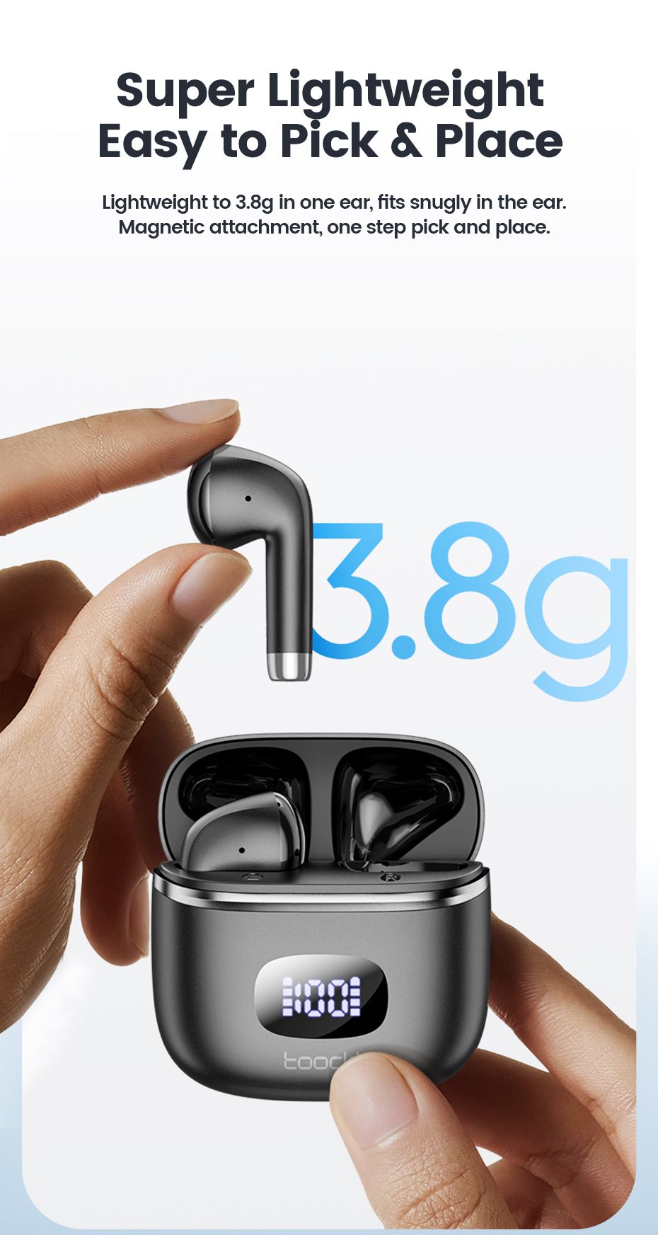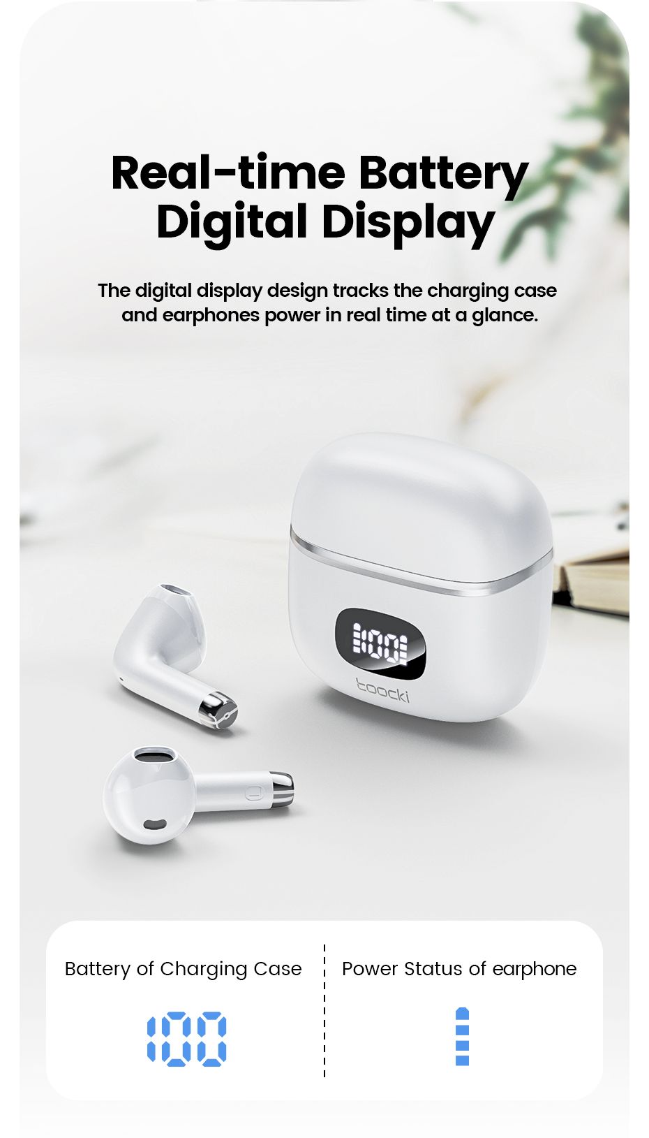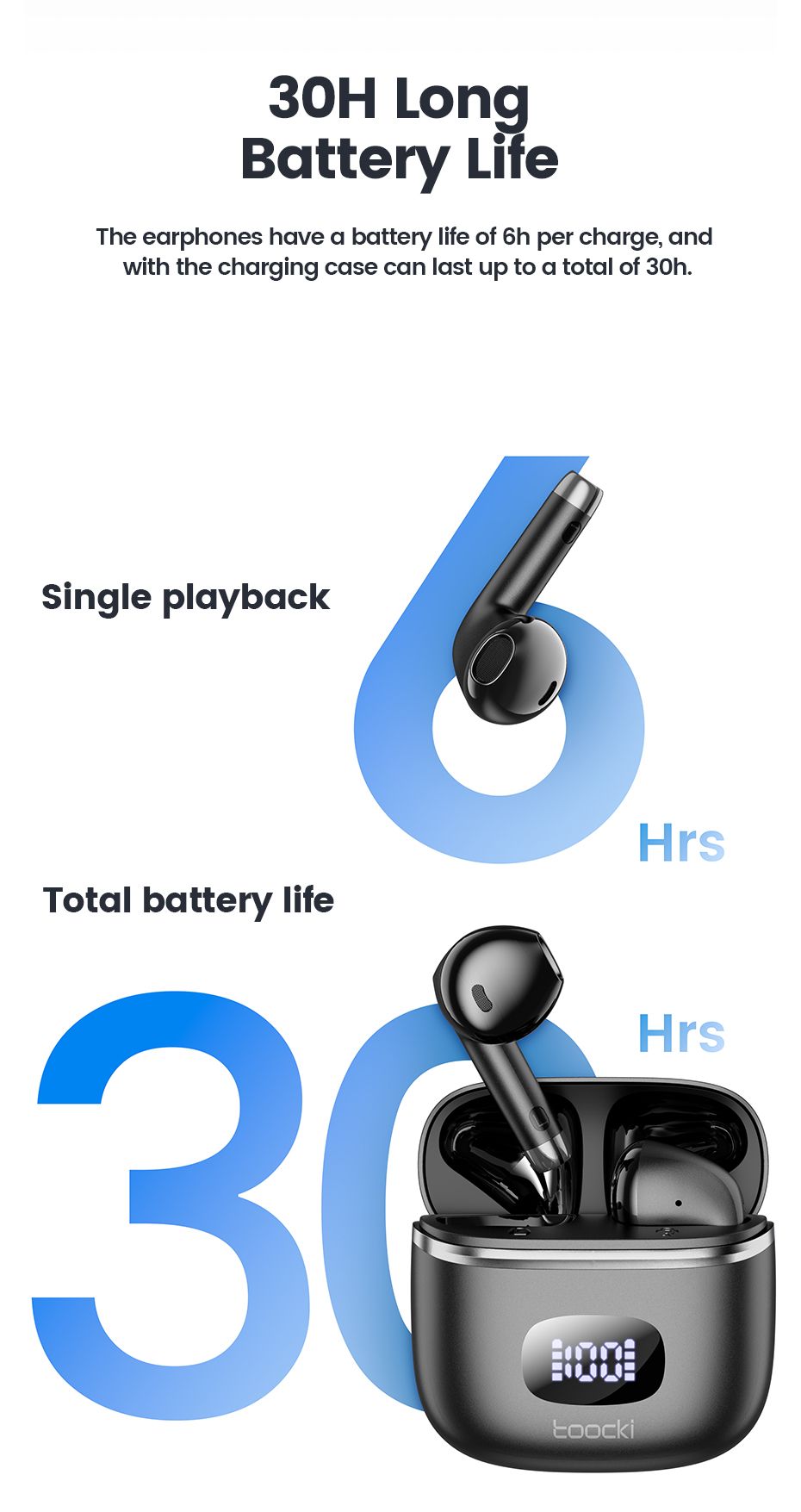 Toocki 06C Bluetooth 5.3 Wireless Headphones Power Digital Display 35hours Endurance Gaming Headsets Waterproof Sports Earbuds
