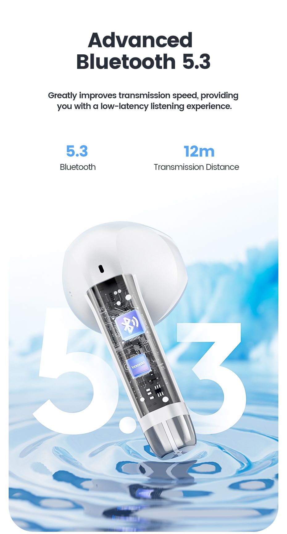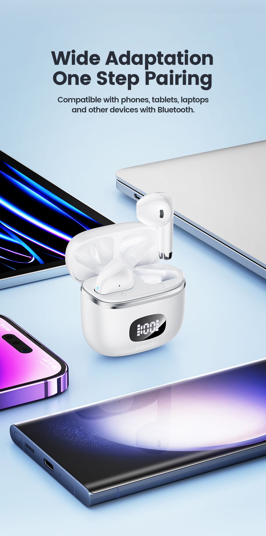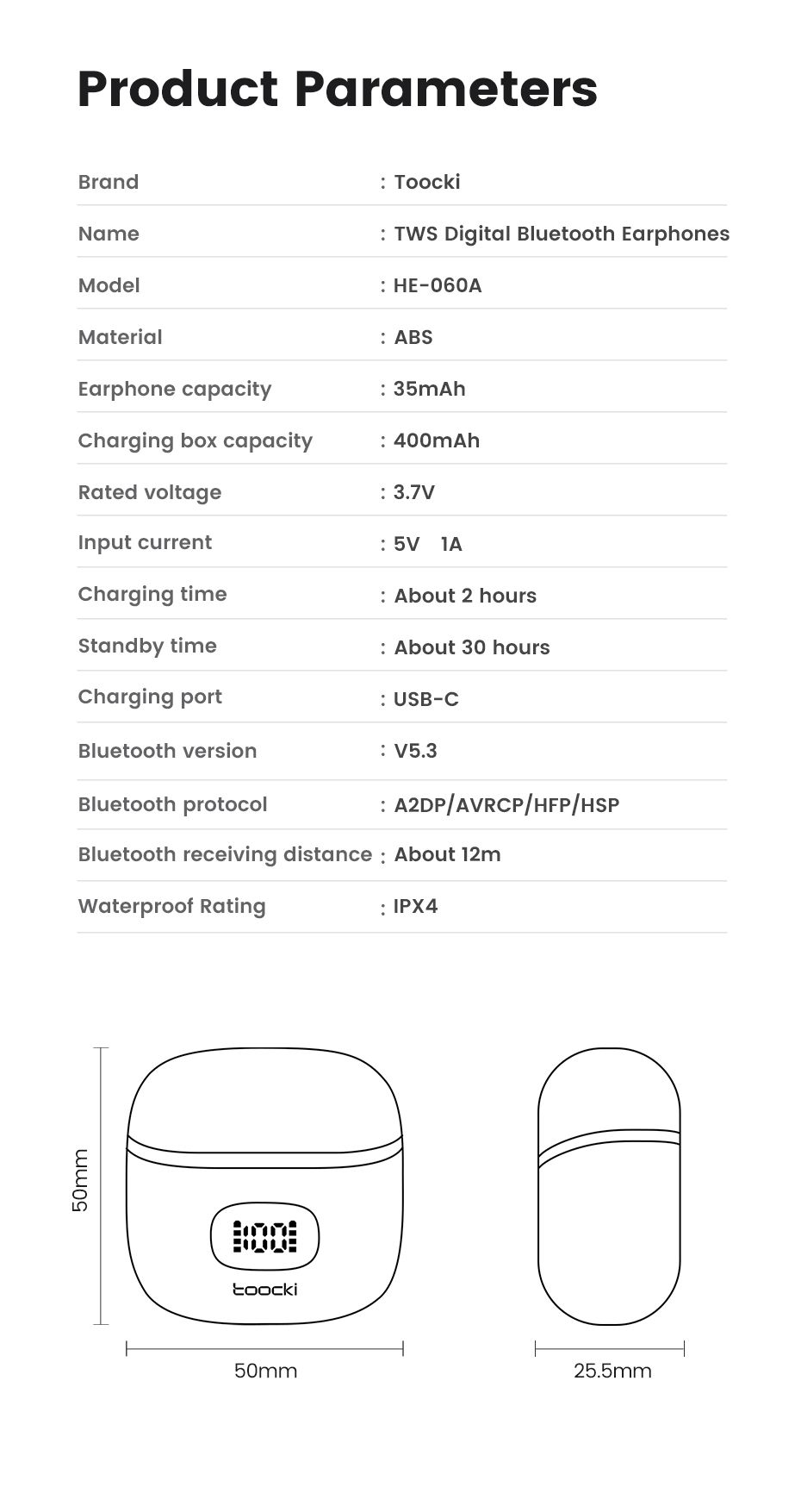Toocki 06C Bluetooth 5.3 Wireless Headphones Power Digital Display 35hours Endurance Gaming Headsets Waterproof Sports Earbuds
