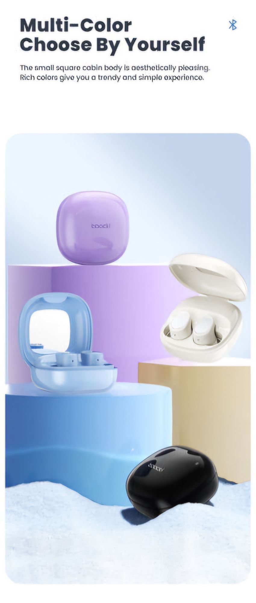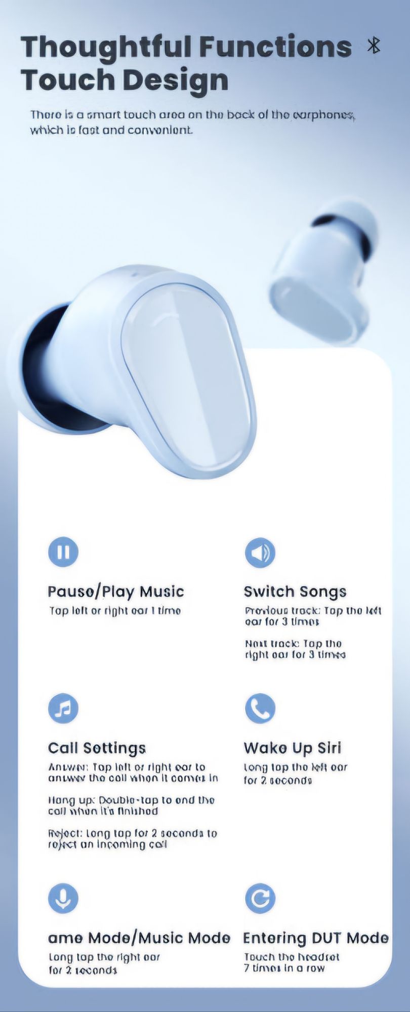 Toocki Bluetooth 5.3 Wireless Earphone HiFi Headphones Touch Control with Mic Sports Noise Reduction