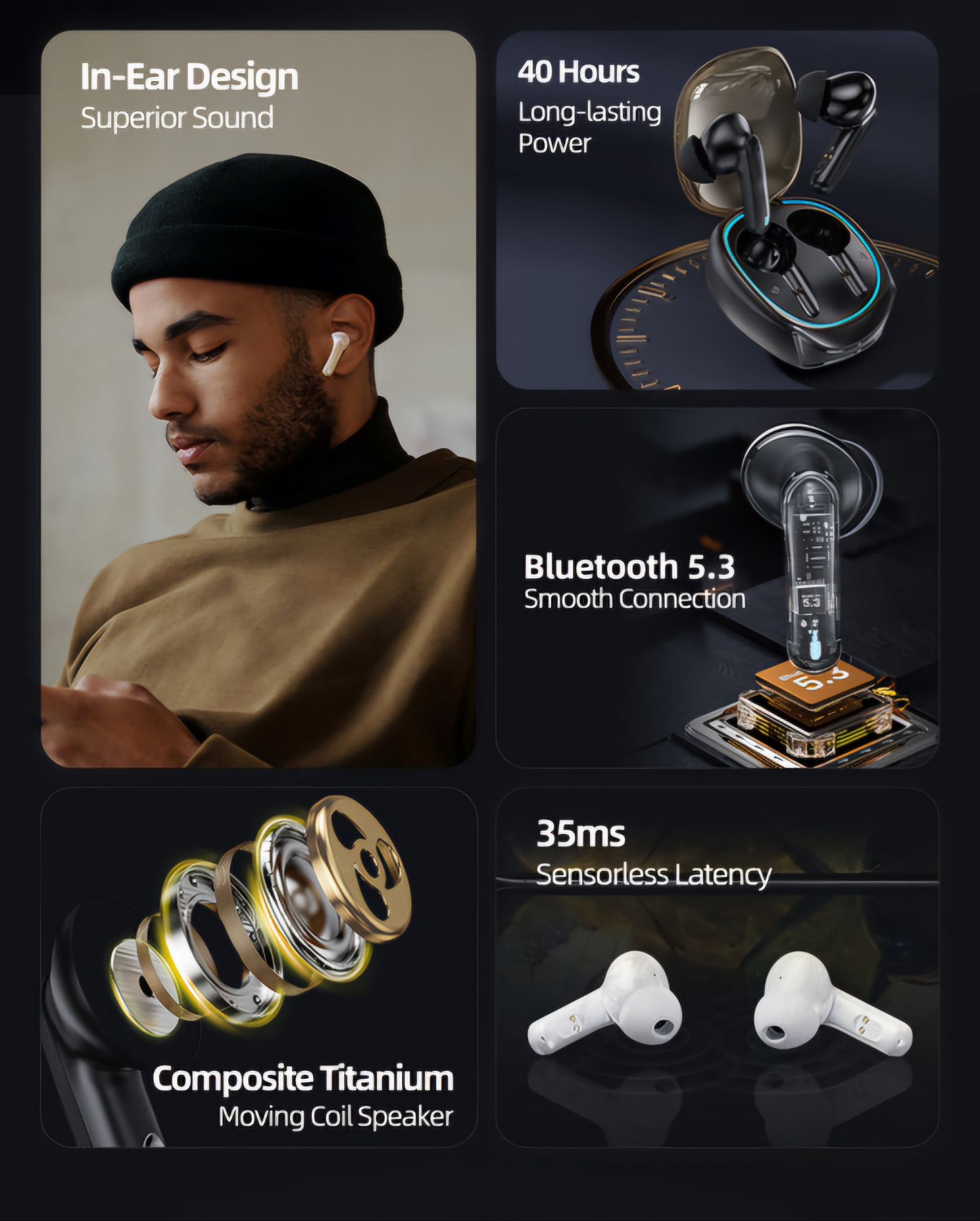 【35ms low latency connection for audio/video, IPX4 Waterproof】