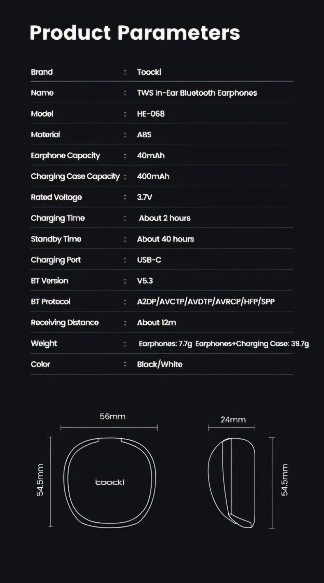 【40 Hours Long Time Standby/About 12m Receiving Distance】