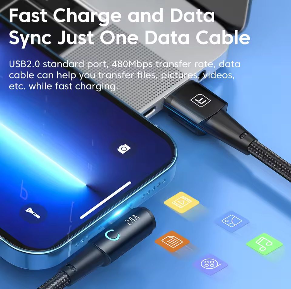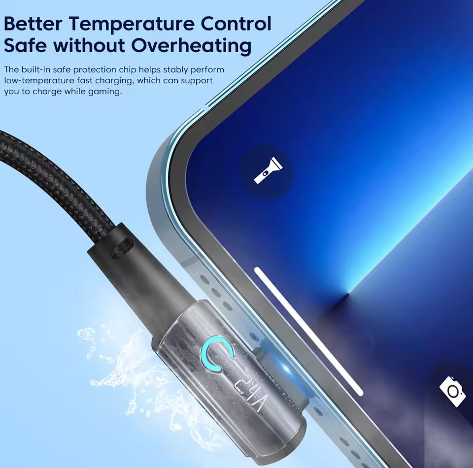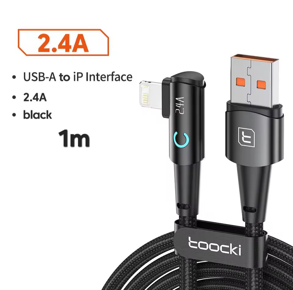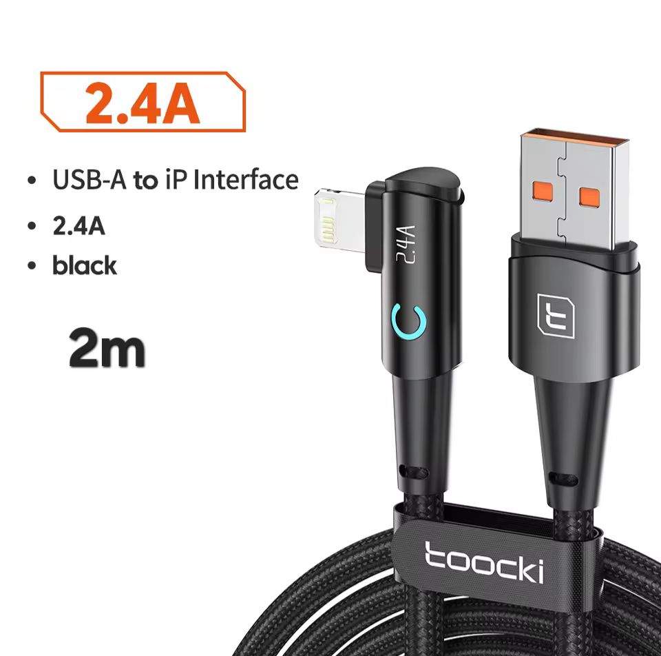 Toocki Degree USB Cable for iPhone 14 13 12 11 Pro Max Pro Max 8 7 Plus 2.4A USB Lightning Cable for iPhone iPad Gaming Wire