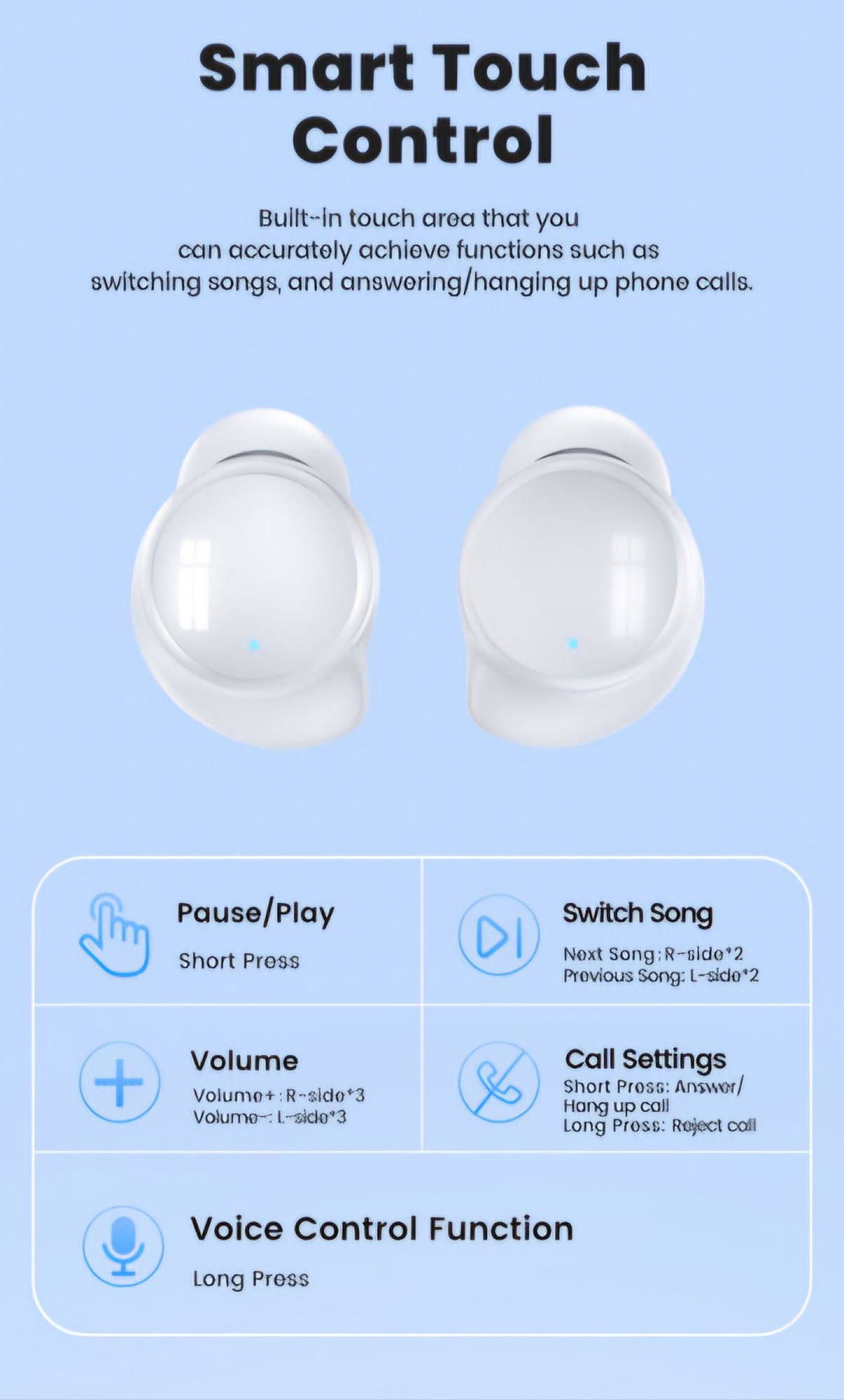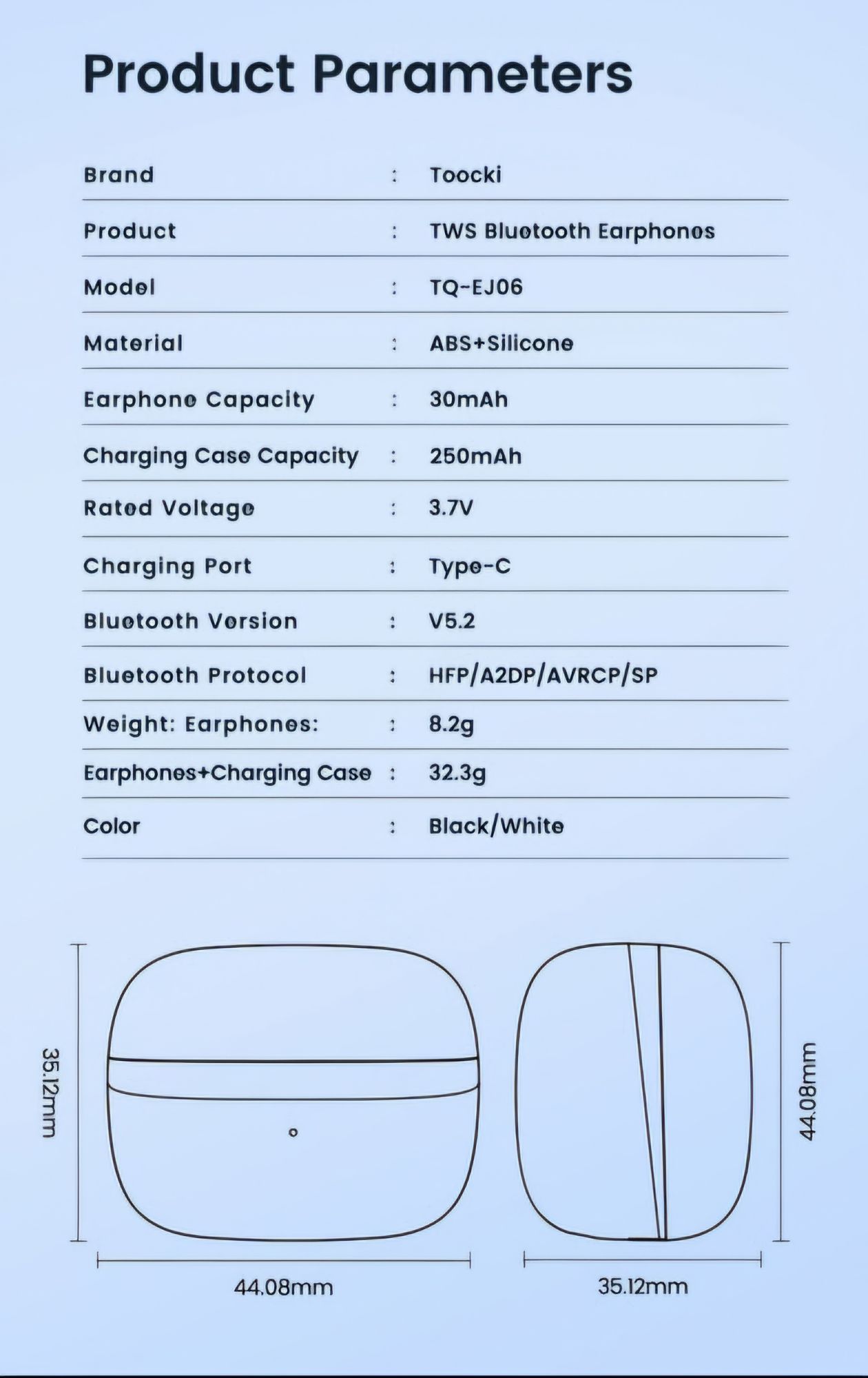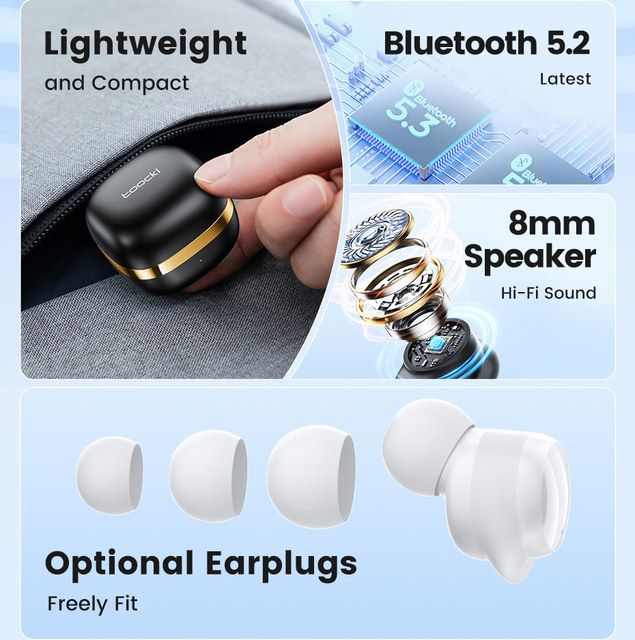 Toocki EJ06 TWS Wireless Earphones Bluetooth 5.2 Mini In-Ear Earbuds Touch Control with Mic for Android Phone