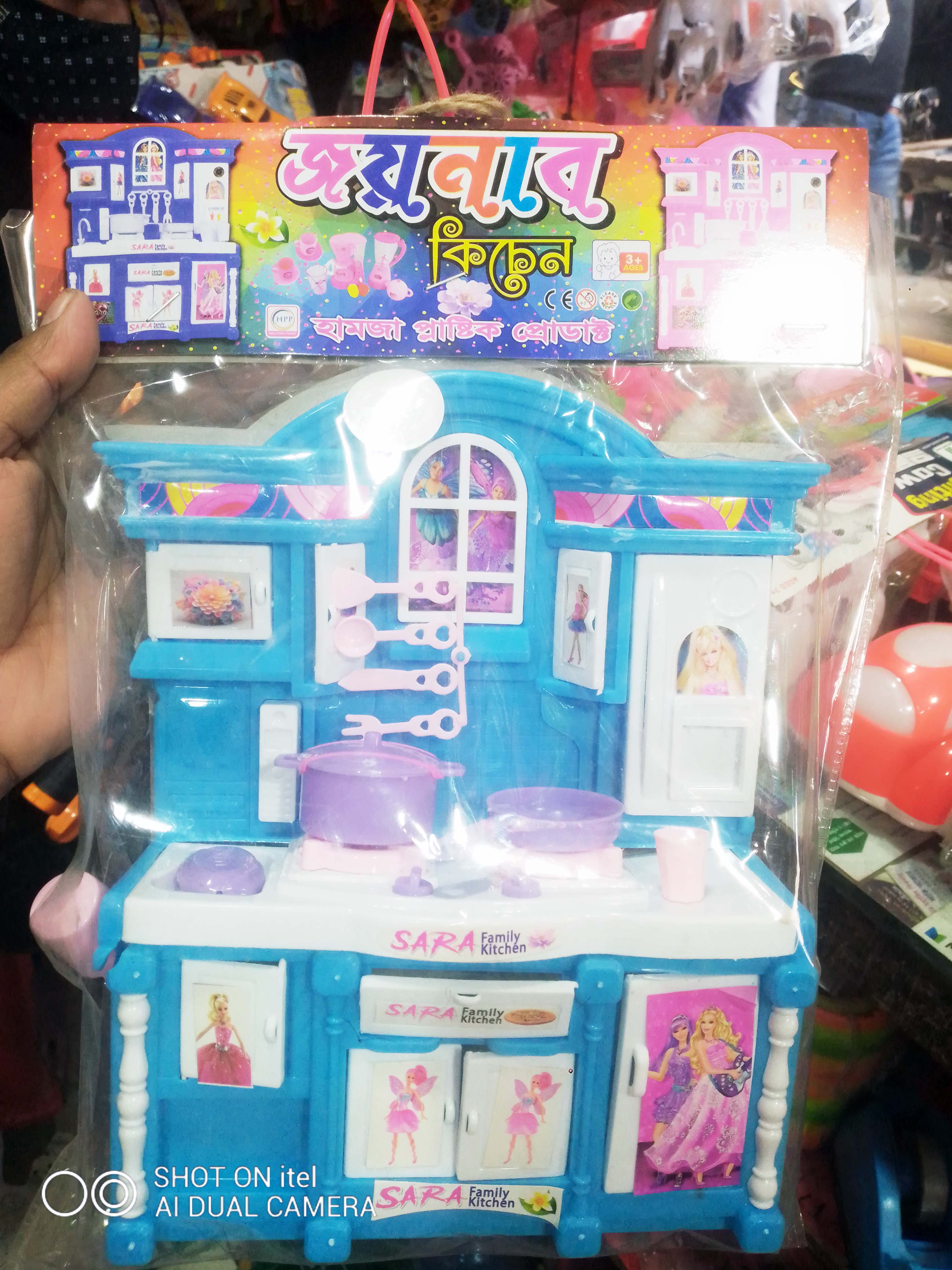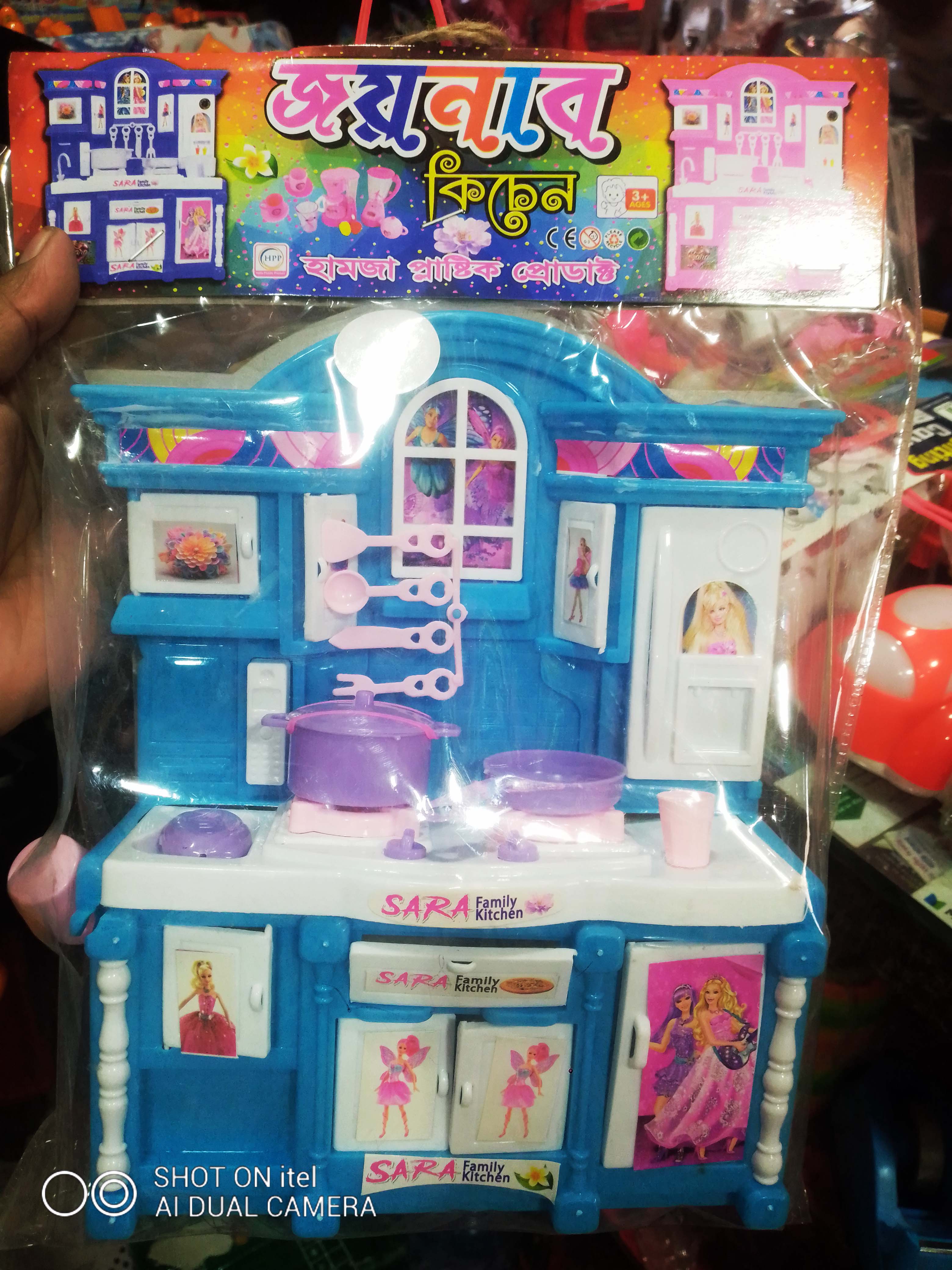 - ☛ heme based 3 Station Beautiful kitchen set with doll,modern kitchen,chair & different set. This Kitchen set contains Cooking Range Unit with Oven Door with Light & Sound.