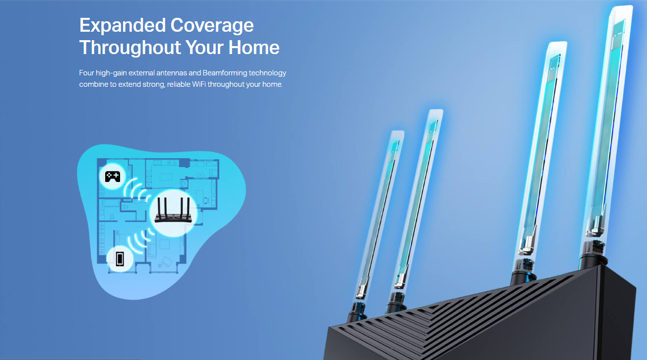 - Wi-Fi Coverage (Approximate) - Up to 2500 Sq. ft.