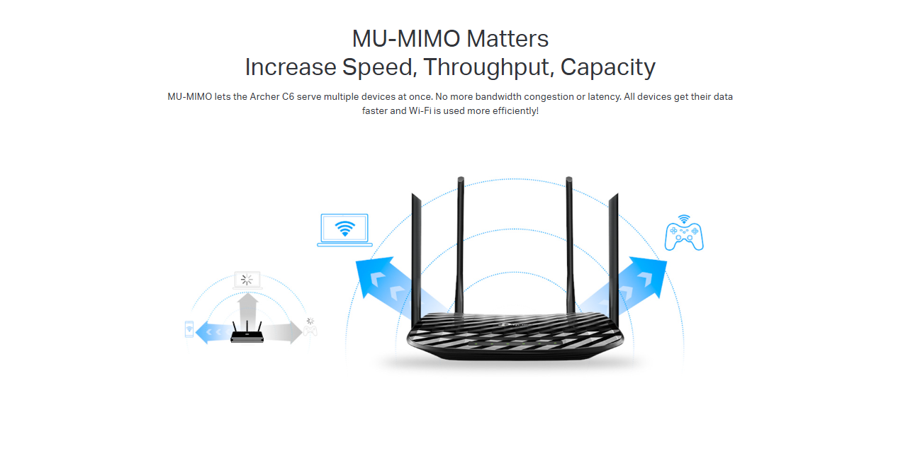 - MU-MIMO achieves 2X efficiency by communicating with up to 2 devices at once