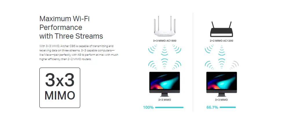 - 3×3 MIMO Technology – Transmitting and receiving data on three streams to pair flawlessly with your 3×3 clients.