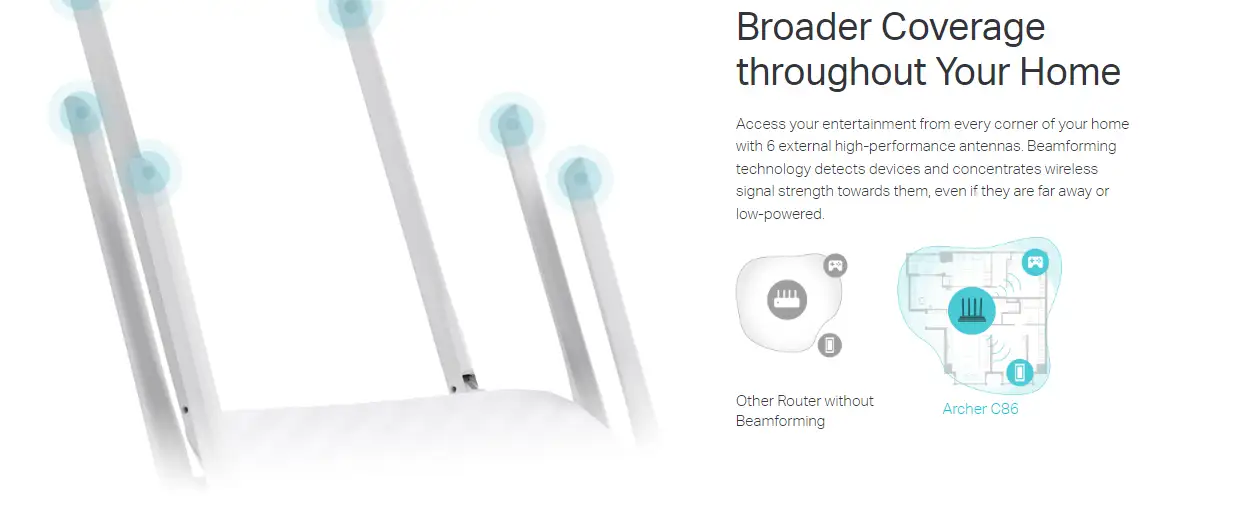 - Boosted Wi-Fi Coverage – Beamforming technology and six external antennas deliver a highly efficient wireless connection.