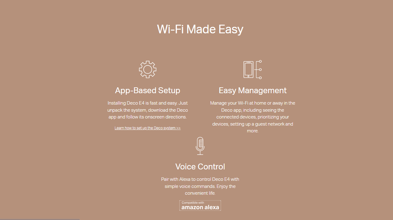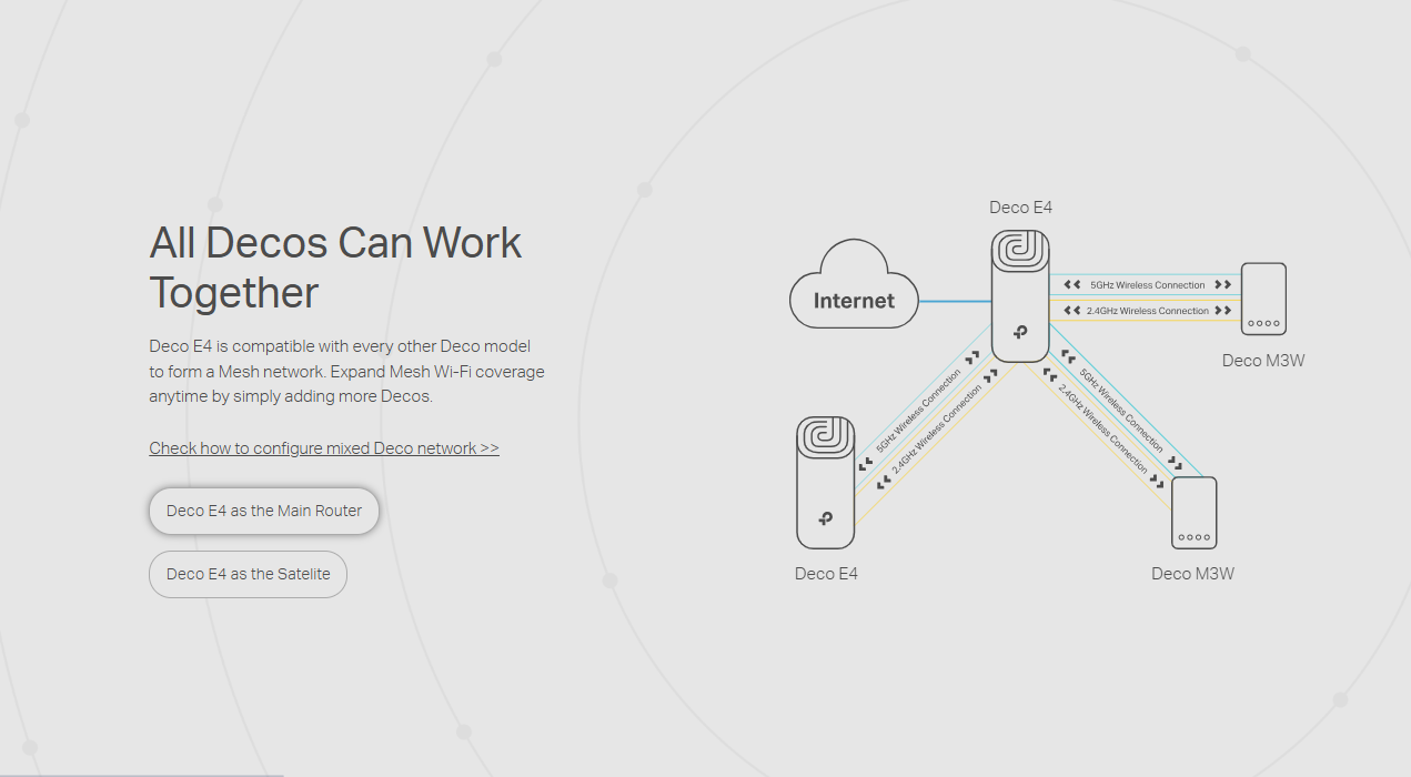 - Deco E4 provides fast and stable connections with speeds of up to 1167 Mbps and works with major internet service provider (ISP) and modem.