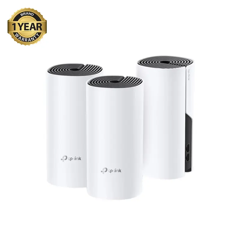 Brand - TP-Link, Model - TP-Link Deco E4 (3-Pack), Router Type - Wireless & Ethernet, Data Transfer Rates (WiFi) - 1200 Mbps (300 + 867), WiFi Network Standards - IEEE 802.11a,n,ac, LAN Network Standard - 10/100, WAN Network Standard - 10/100, Data Transfer Rate (Lan) - 100 Mbps, Interface - 2 x LAN/WAN, Number of WAN Port - 1, Number of LAN Port - 1, USB Interface - No, USB Interface Application - No, Antenna (Type & Qty) - 2 x Internal dual-band antennas, Operating Frequency - 2.4 GHz & 5 GHz, Security Protocols - WPA-PSK-/WPA2-PSK, Firewall Protocols - SPI Firewall, WAN Type - Dynamic IP, Static IP, PPPoE, PPTP, L2TP, Wi-Fi Generation - Wi-Fi 5, Band - Dual, WiFi Coverage (Approximate) - Up to 4,500 sq. ft., Number of Concurrent User - Up to 100 devices User connections, Internet Connectivity - WAN Only, SIM Card Slot Included - No, SIM Card Slot - No, 3G/4G - No, Mesh Technology - Yes, MIMO Technology - No, VPN Support - No, Voice Assistant - Amazon Alexa, Built in Antivirus - No, Wall Mountable - No, Best For - Very large home, Print Compatible - No, Button - Reset, LED Indicators - Not Specified, Power - 12V - 1A, Operating Temperature - 0 degree C - 40 degree C, Storage Temperature - -40 degree C - 70 degree C, Operating Humidity - 10% - 90% non-condensing, Storage Humidity - 5% - 90% non-condensing, Dimension (WxDxH mm) - 190.5x 90.7x 90.7mm, Color - White, Speciality - AC1200 Whole Home Mesh Wi-Fi System, Deco uses a system of units to achieve seamless whole-home Wi-Fi coverage, A Deco E4 three-pack delivers Wi-Fi to an area of up to 4,500 square feet, And if thats not enough, simply add more Decos to the network anytime to increase coverage, Deco E4 provides fast and stable connections with speeds of up to 1167 Mbps and works with the major internet service provider (ISP) and modem, Deco can handle traffic from even the busiest of networks, providing lag-free connections for up to 100 devices, Parental Controls limits online time and block inappropriate websites according to unique profiles created for each family member, US Version 1.0, Others - AC adapter input: 100-240V- 50/60Hz 0.3A, AC adapter output: 12V - 1A, Button: 1 Reset button on the underside, Flash: 16MB, SDRAM: 128MB, Frequency: 2.4 GHz and 5 GHz, WAN Type: Dynamic IP/Static IP/PPPoE/L2TP/PPTP, Management: Local Management, Remote Management, Protocols: Supports IPv4 and IPv6, Working Modes: Router, Access Point, Smartphone/Tablet Requirements: iOS 9.0 or later, Android 4.3 or later, Dimensions: 190.5 x 90.7 x 90.7mm, Part/Model Number - Deco E4, Certifications - CE, FCC, IC, NCC, BSMI, IDA, RCM, JPA, JRF, VCCI, KC, RoHS, Warranty - 1 Year (Without Adapter), Country of Origin - China, Made in/ Assemble - China