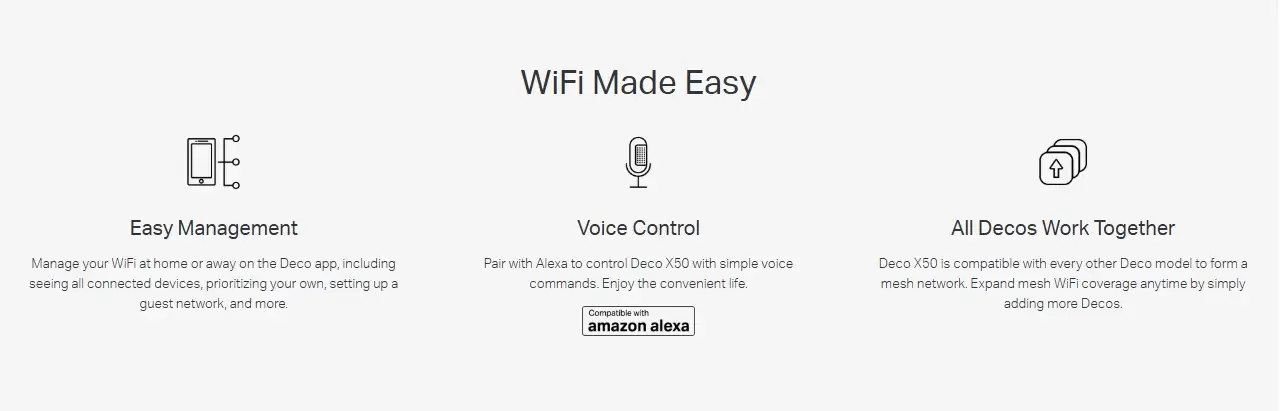 - TP-Link Mesh Technology: The Deco X50 can be used as a standalone router or as part of a mesh network system. This allows you to expand coverage to larger areas and eliminate dead zones.