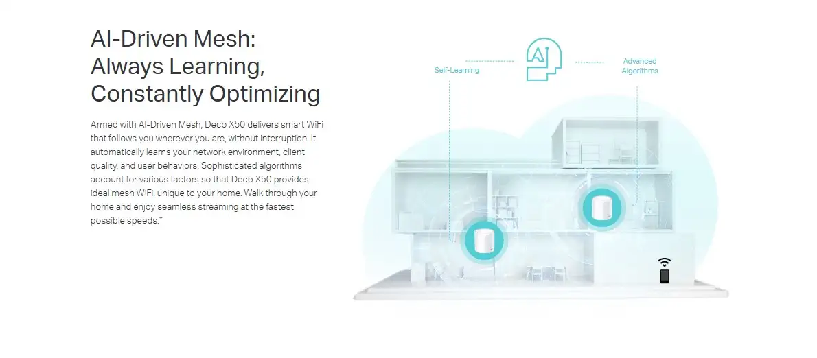 - TP-Link Mesh Technology: The Deco X50 can be used as part of a mesh network, allowing you to extend your Wi-Fi coverage to every corner of your home or office.