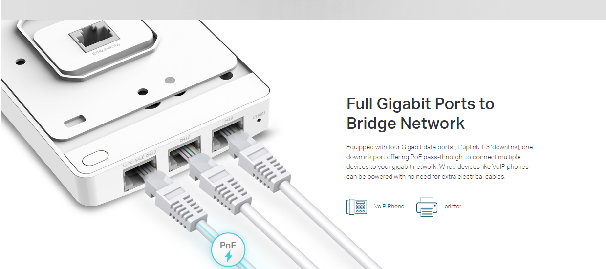 Omada AC1200 Wireless MU-MIMO Gigabit Wall Plate Access Point