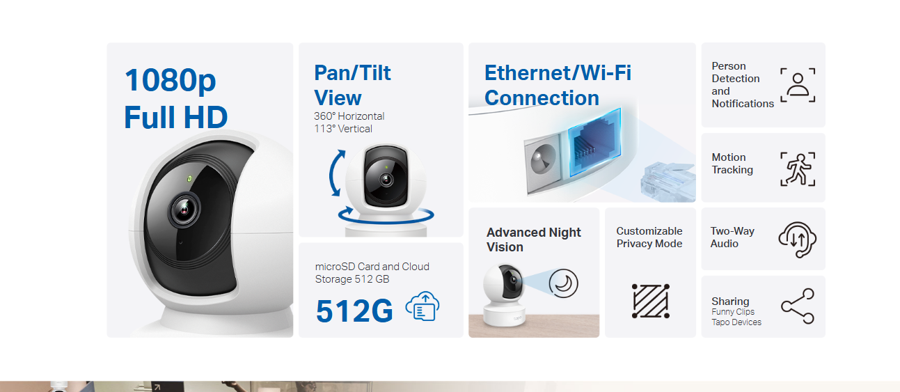 - Pan and Tilt: 360º horizontal and 113º vertical range